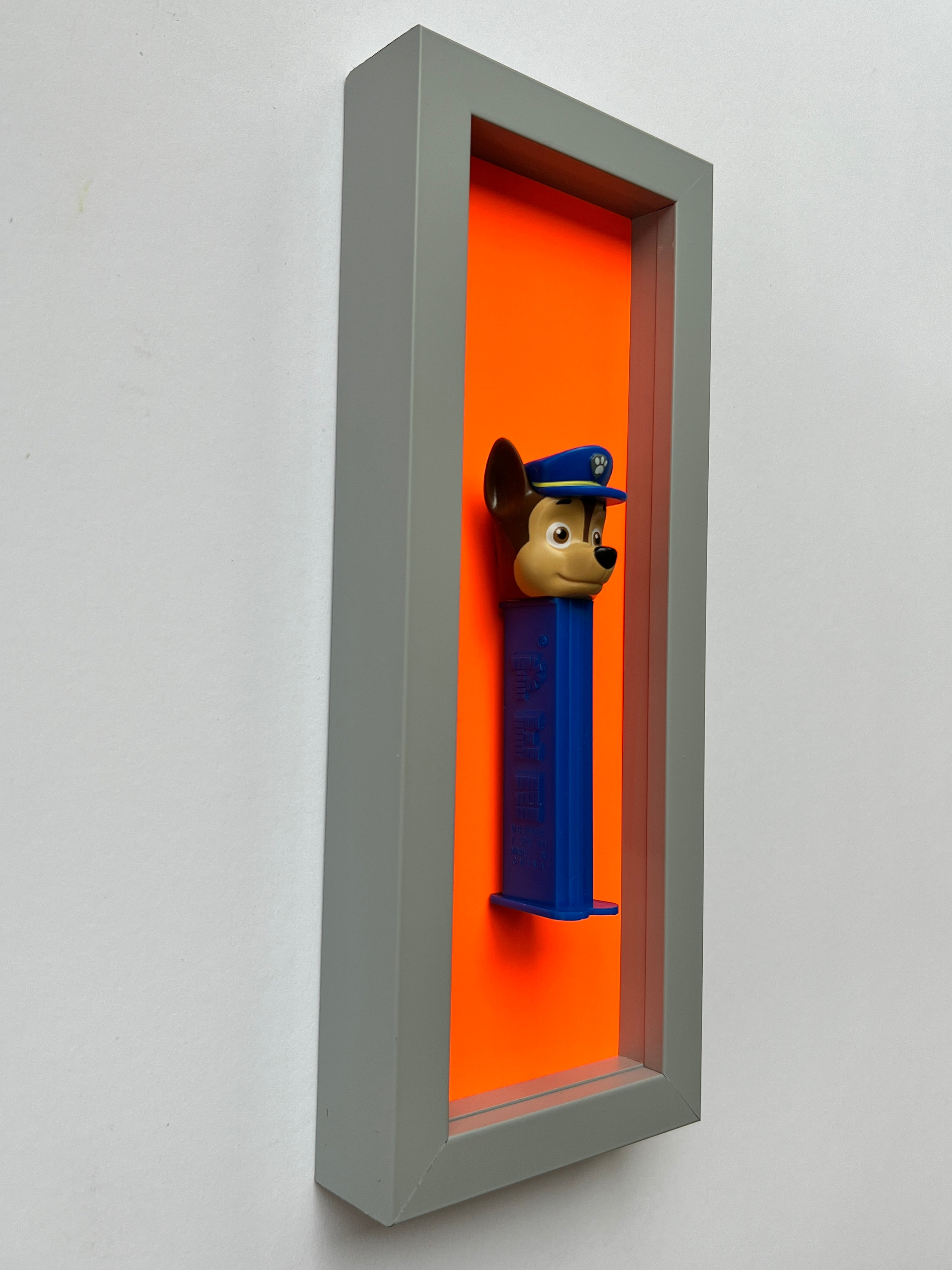 Jede Figur erzählt ihre eigene Geschichte – manche sind fast 50 Jahre alt und haben geduldig darauf gewartet, wiederentdeckt zu werden. Als wir die ersten PEZ-Spender auf einem Flohmarkt fanden, war sofort klar: Diese kleinen Schätze verdienen eine Bühne. Nach viel Tüftelei, dem Mix aus ausgewählten Materialien und liebevoller Handarbeit sind sie nun da – kleine Helden, kunstvoll in komplementären Farben gerahmt für deine Wände!