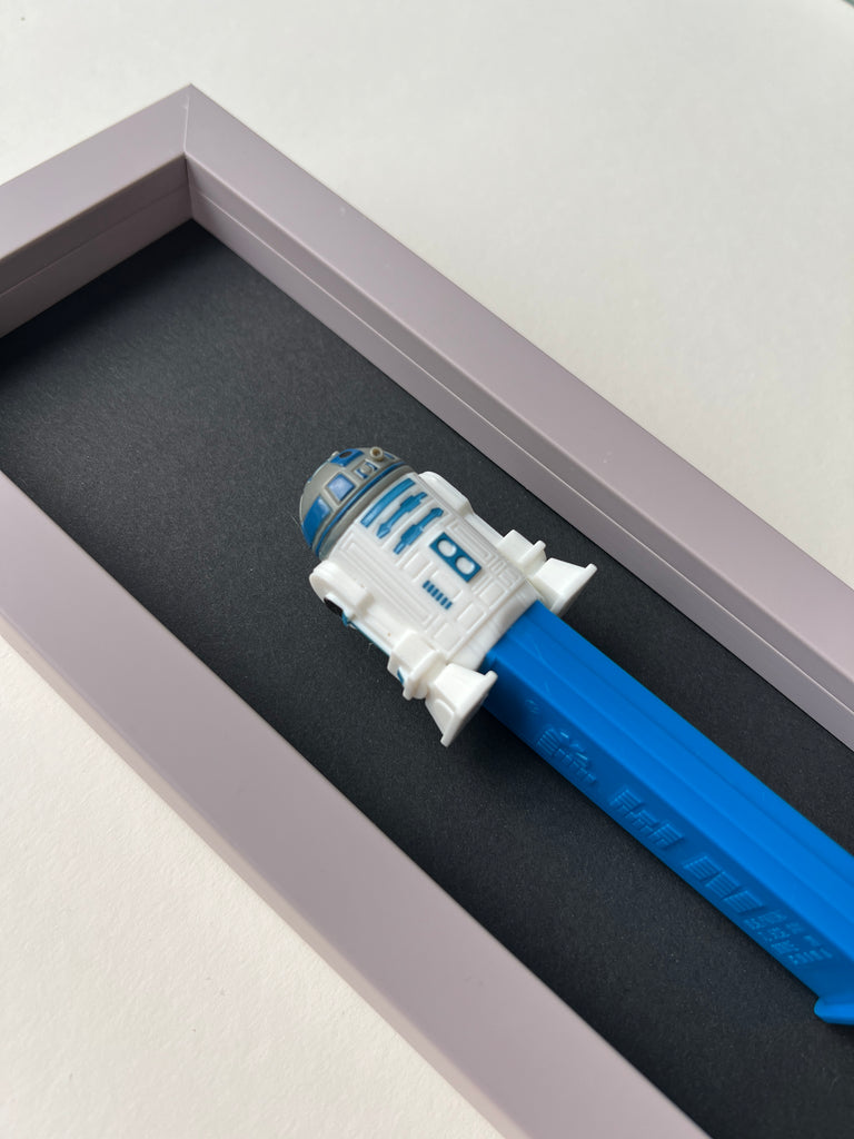 Jede Figur erzählt ihre eigene Geschichte – manche sind fast 50 Jahre alt und haben geduldig darauf gewartet, wiederentdeckt zu werden. Als wir die ersten PEZ-Spender auf einem Flohmarkt fanden, war sofort klar: Diese kleinen Schätze verdienen eine Bühne. Nach viel Tüftelei, dem Mix aus ausgewählten Materialien und liebevoller Handarbeit sind sie nun da – kleine Helden, kunstvoll in komplementären Farben gerahmt für deine Wände!