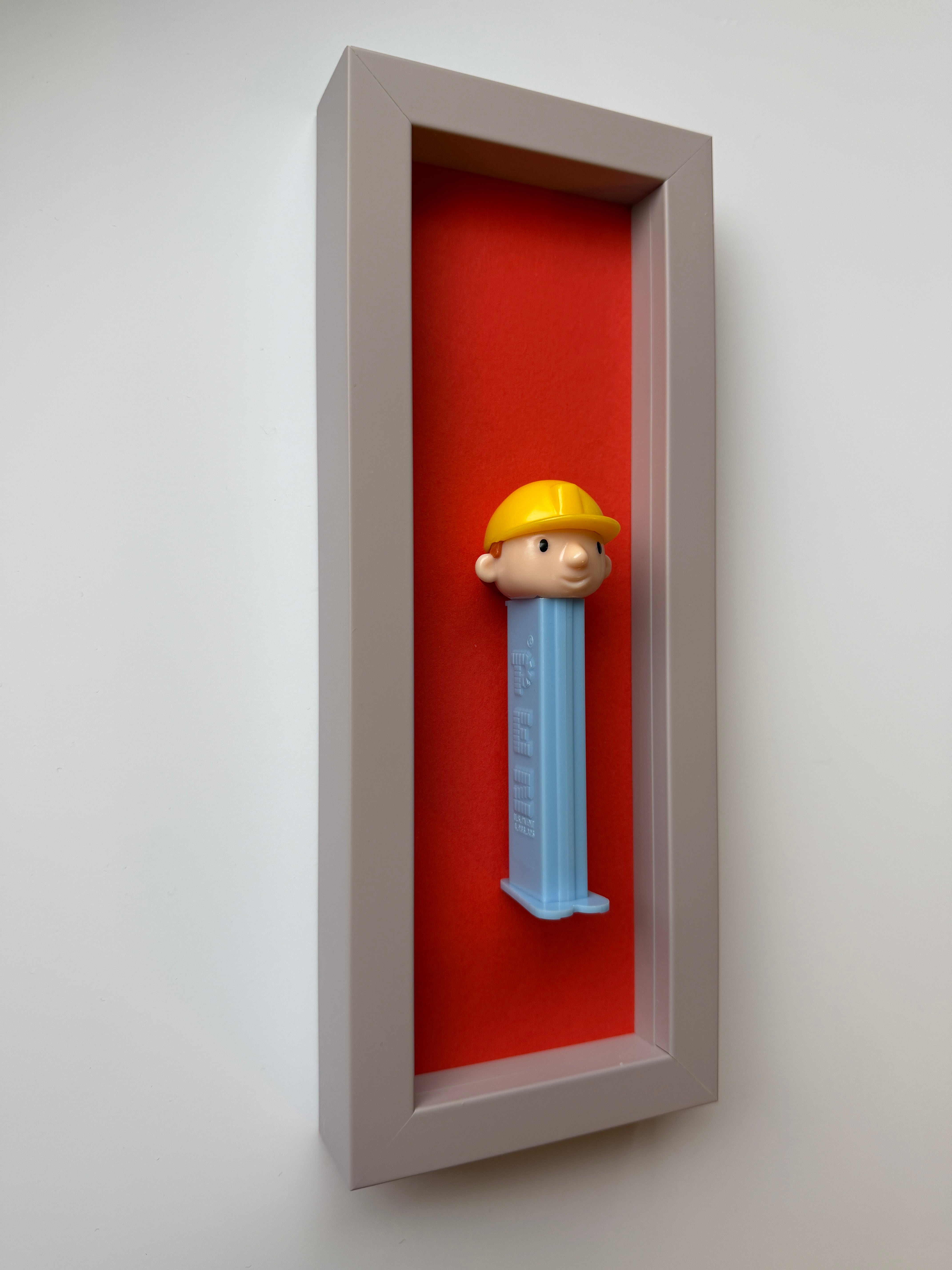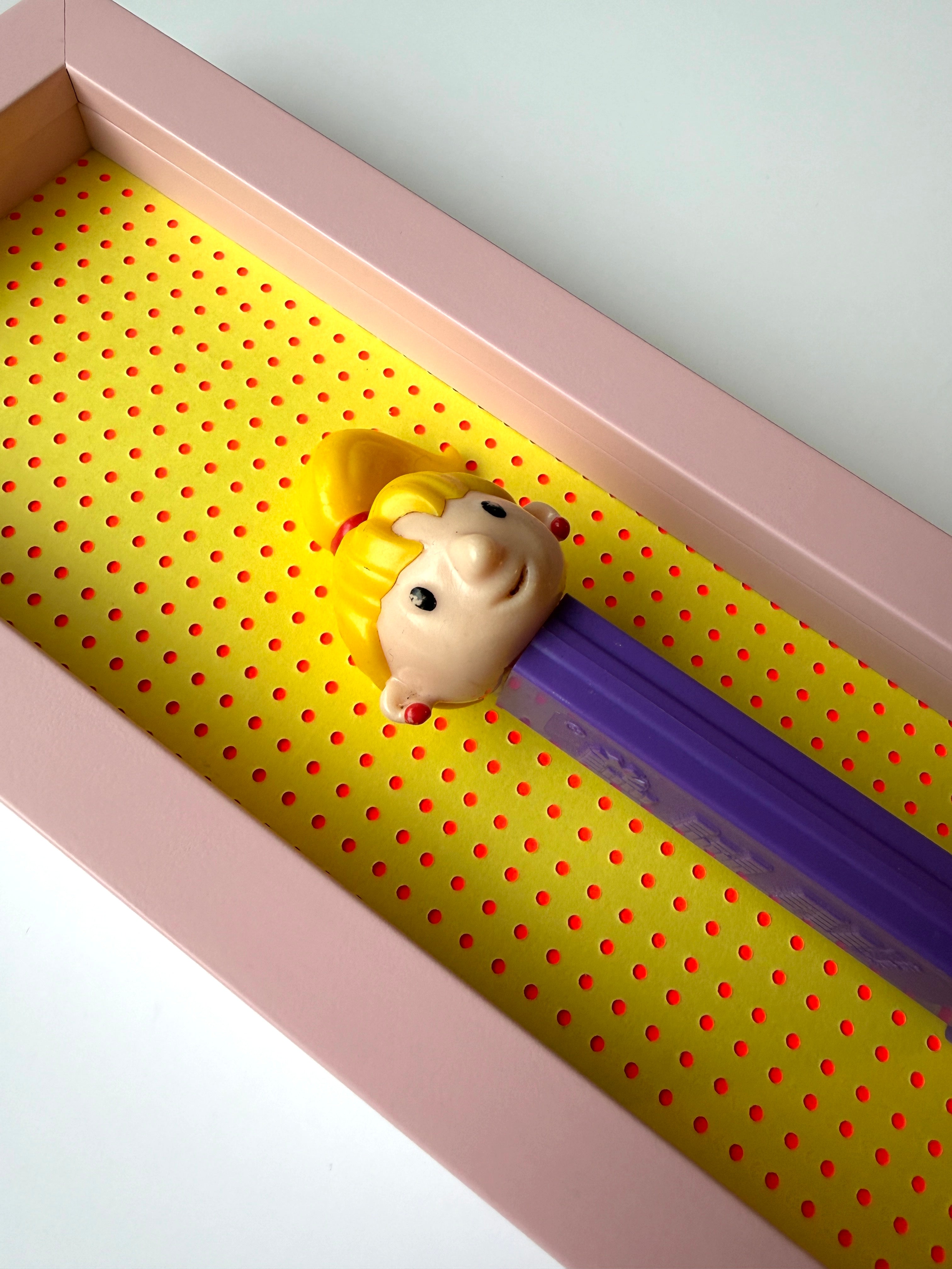 Jede Figur erzählt ihre eigene Geschichte – manche sind fast 50 Jahre alt und haben geduldig darauf gewartet, wiederentdeckt zu werden. Als wir die ersten PEZ-Spender auf einem Flohmarkt fanden, war sofort klar: Diese kleinen Schätze verdienen eine Bühne. Nach viel Tüftelei, dem Mix aus ausgewählten Materialien und liebevoller Handarbeit sind sie nun da – kleine Helden, kunstvoll in komplementären Farben gerahmt für deine Wände!