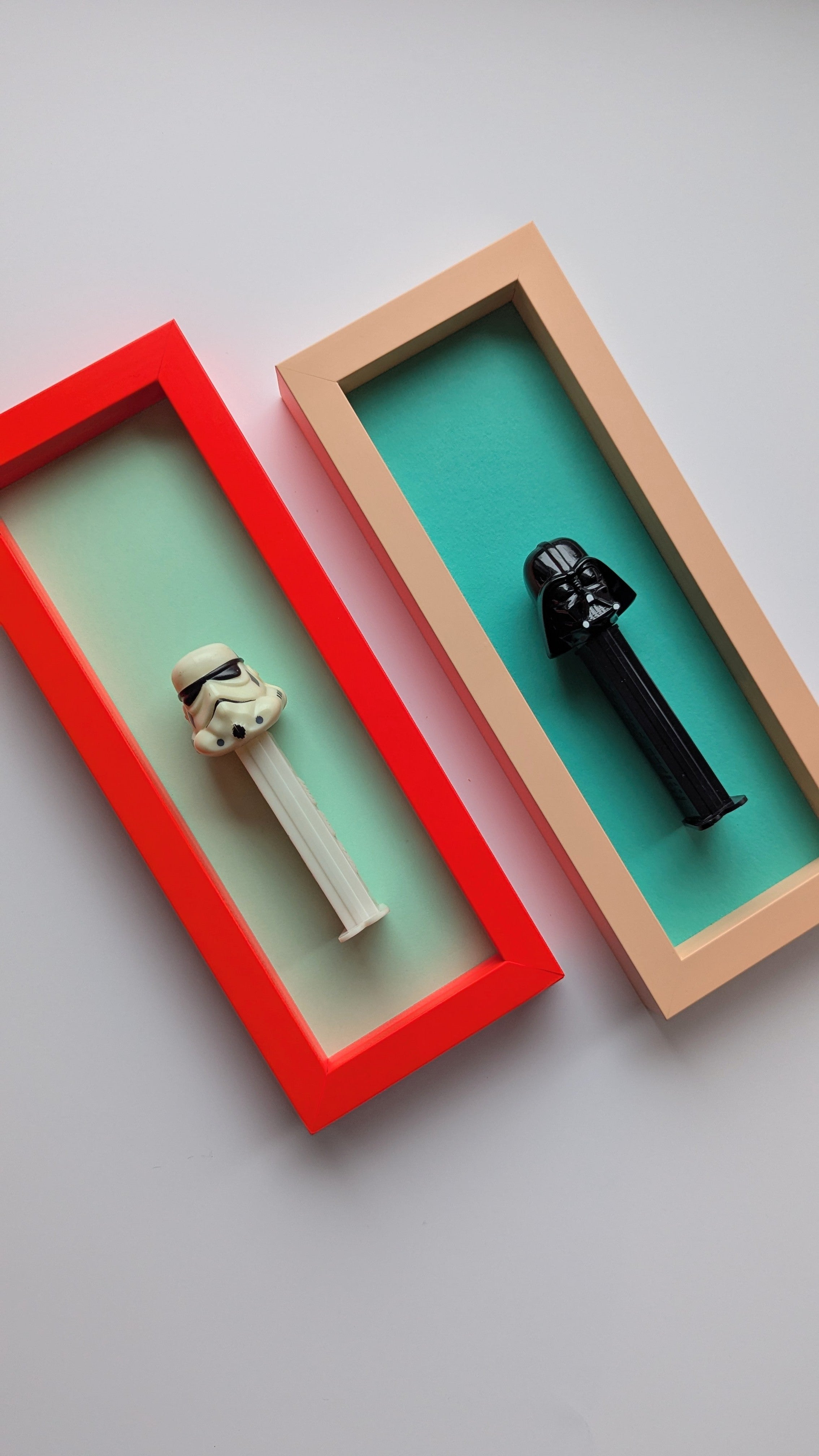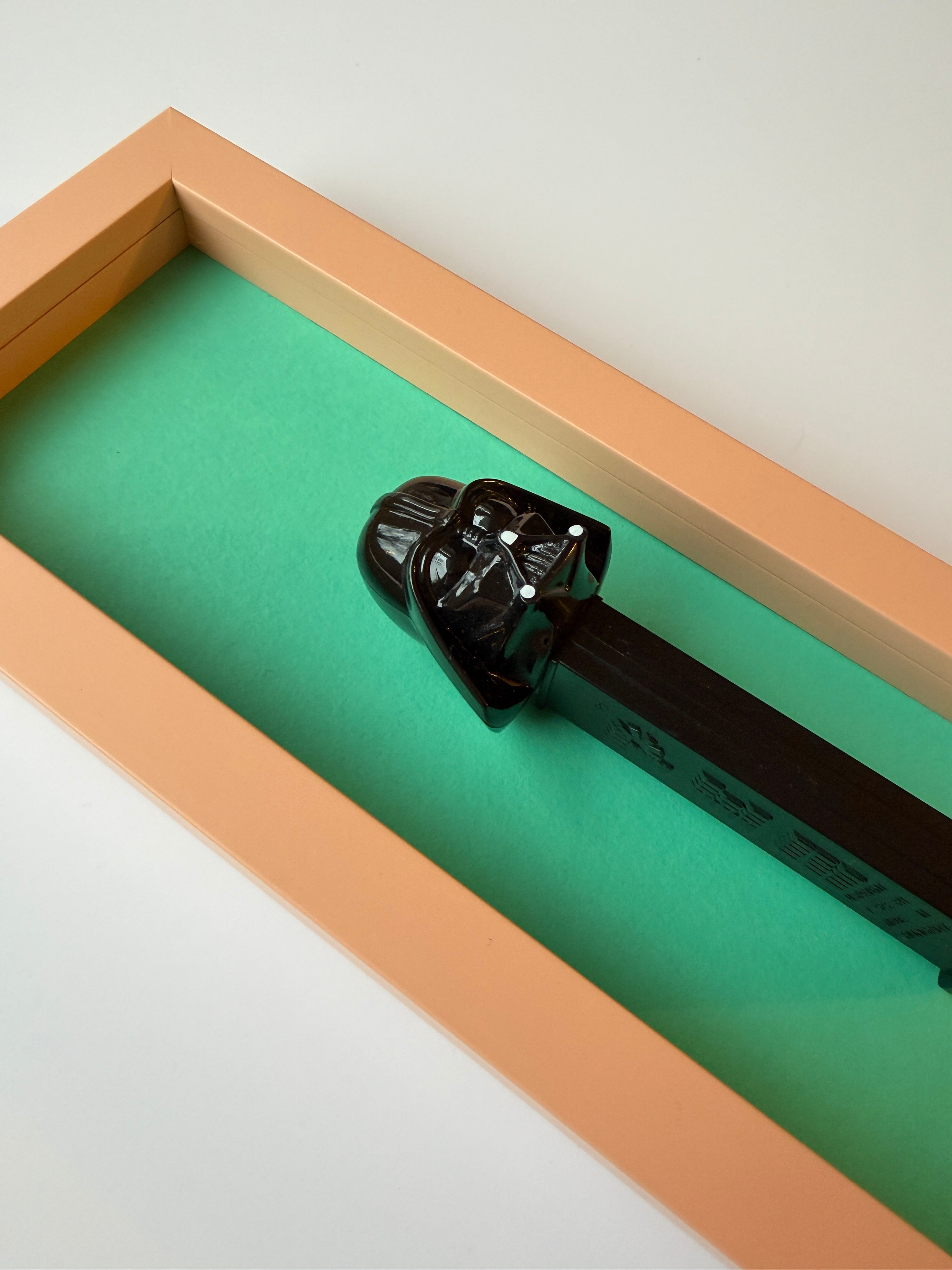Jede Figur erzählt ihre eigene Geschichte – manche sind fast 50 Jahre alt und haben geduldig darauf gewartet, wiederentdeckt zu werden. Als wir die ersten PEZ-Spender auf einem Flohmarkt fanden, war sofort klar: Diese kleinen Schätze verdienen eine Bühne. Nach viel Tüftelei, dem Mix aus ausgewählten Materialien und liebevoller Handarbeit sind sie nun da – kleine Helden, kunstvoll in komplementären Farben gerahmt für deine Wände!