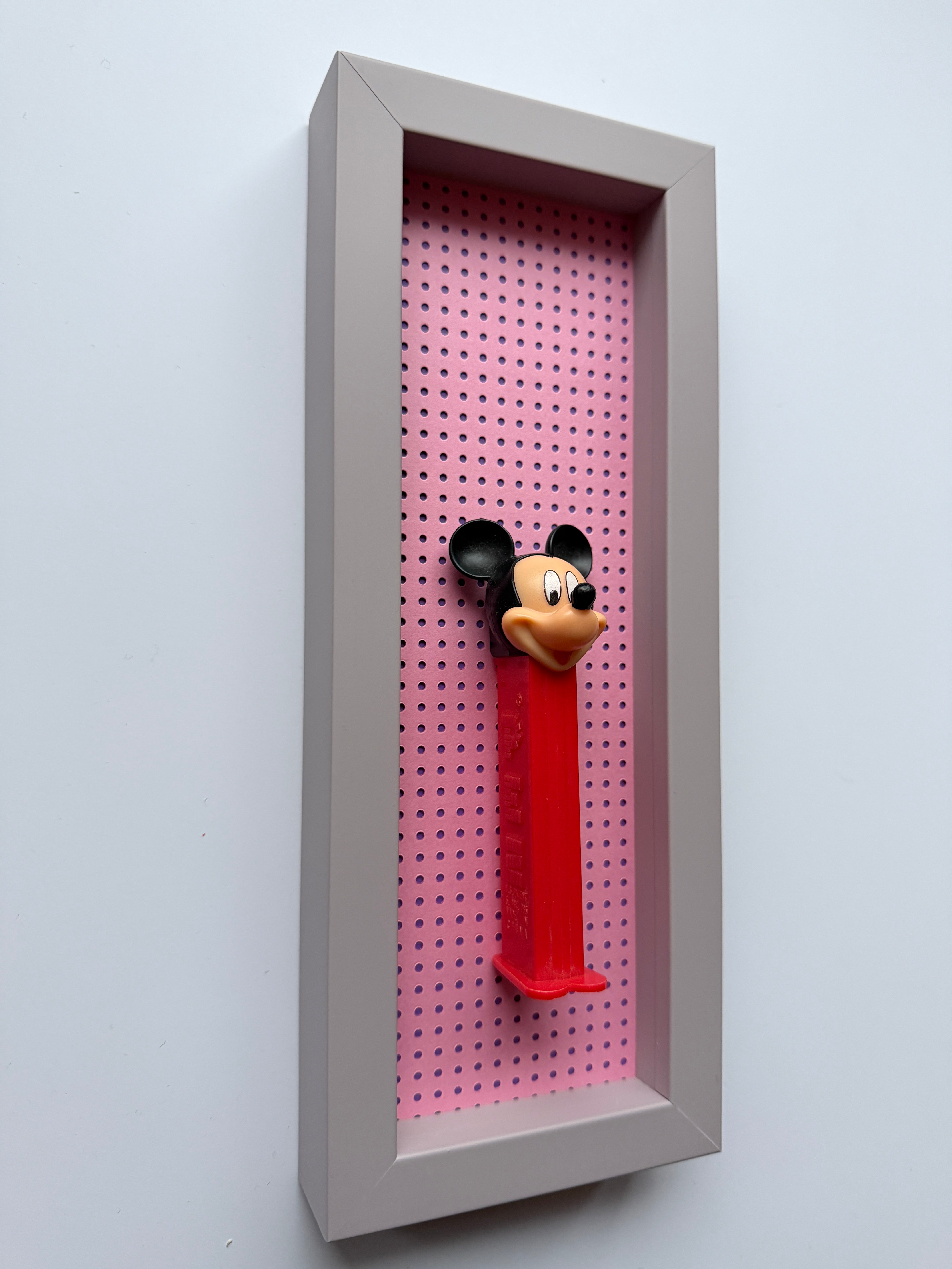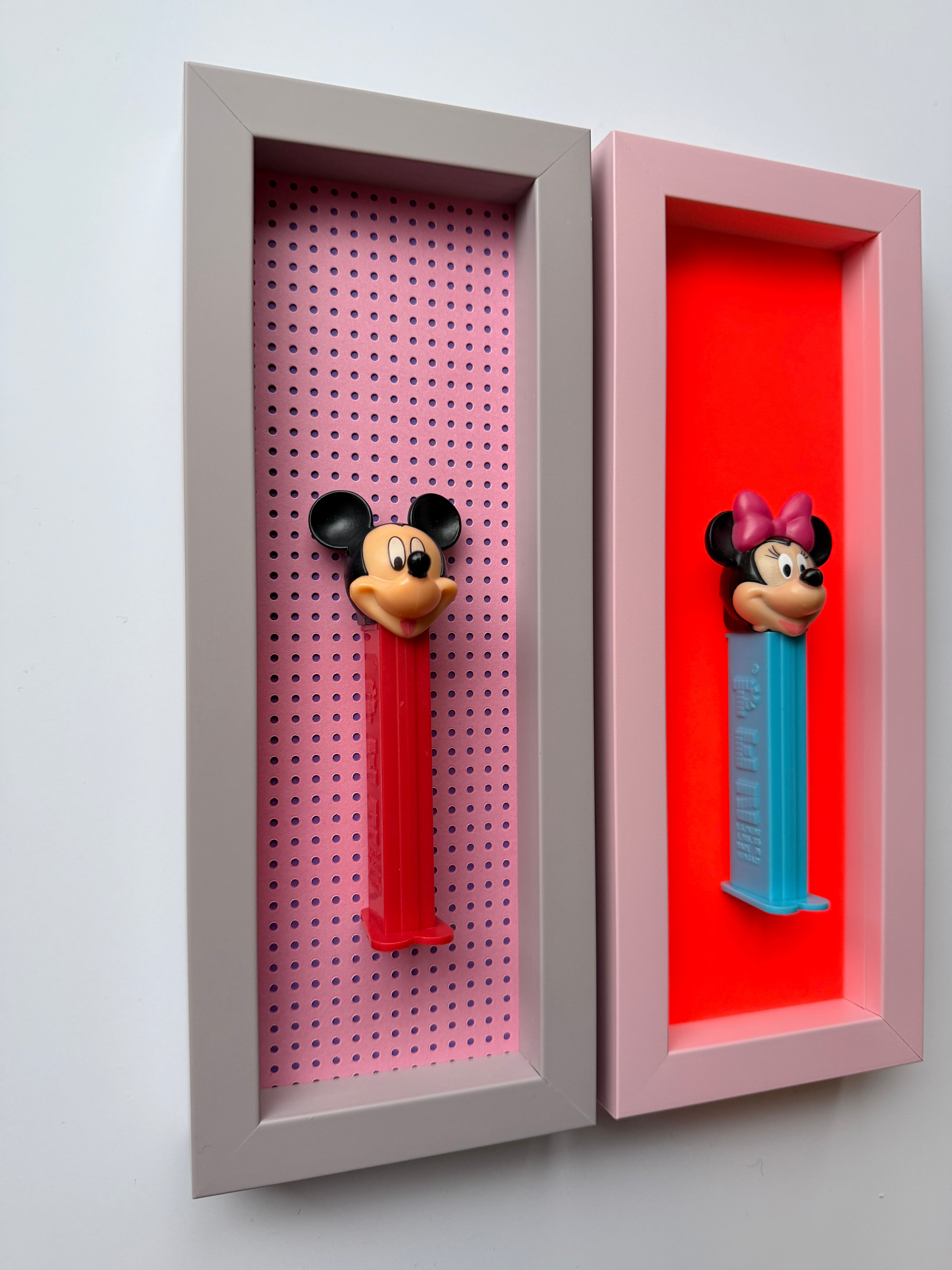 Jede Figur erzählt ihre eigene Geschichte – manche sind fast 50 Jahre alt und haben geduldig darauf gewartet, wiederentdeckt zu werden. Als wir die ersten PEZ-Spender auf einem Flohmarkt fanden, war sofort klar: Diese kleinen Schätze verdienen eine Bühne. Nach viel Tüftelei, dem Mix aus ausgewählten Materialien und liebevoller Handarbeit sind sie nun da – kleine Helden, kunstvoll in komplementären Farben gerahmt für deine Wände!