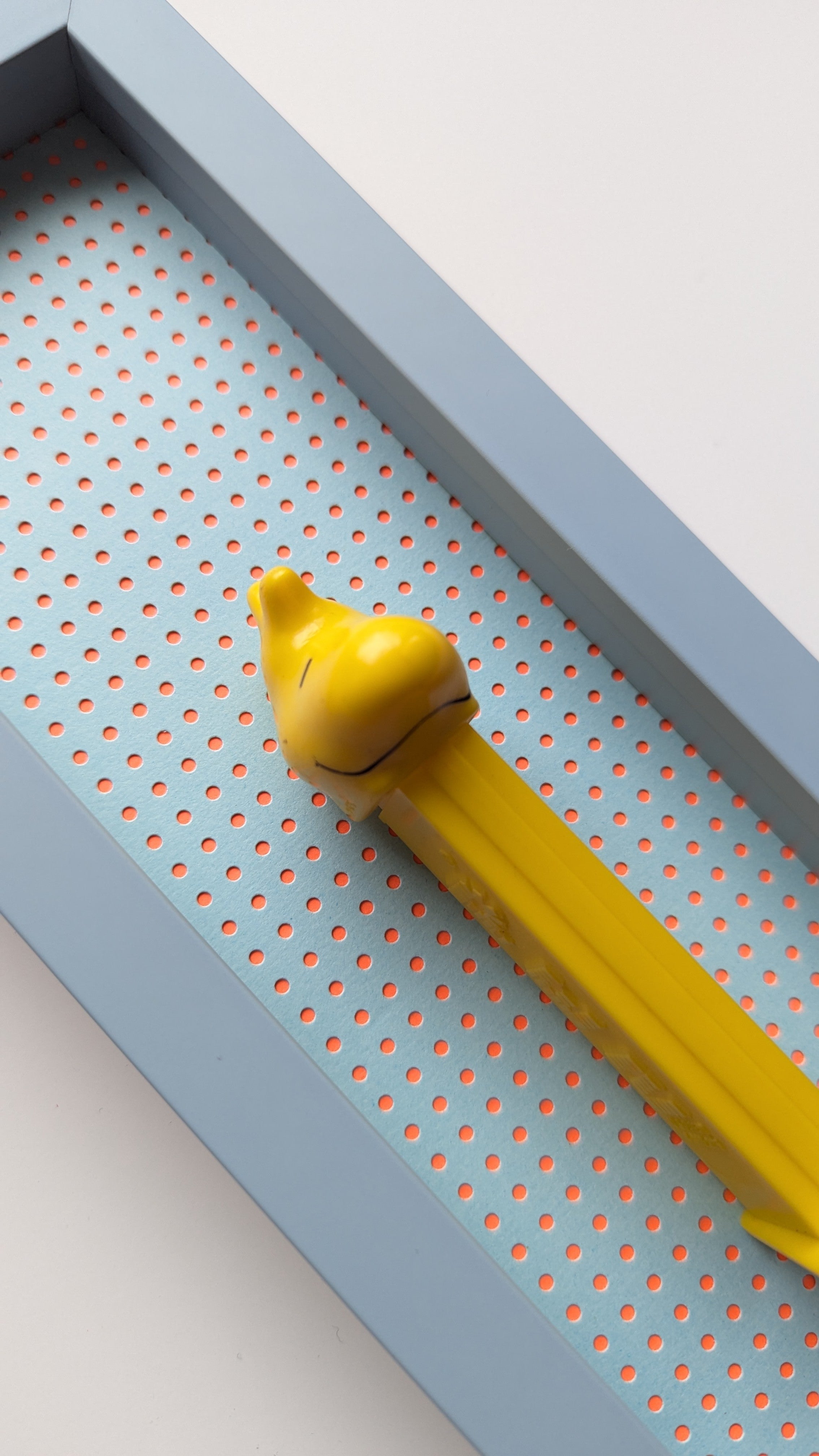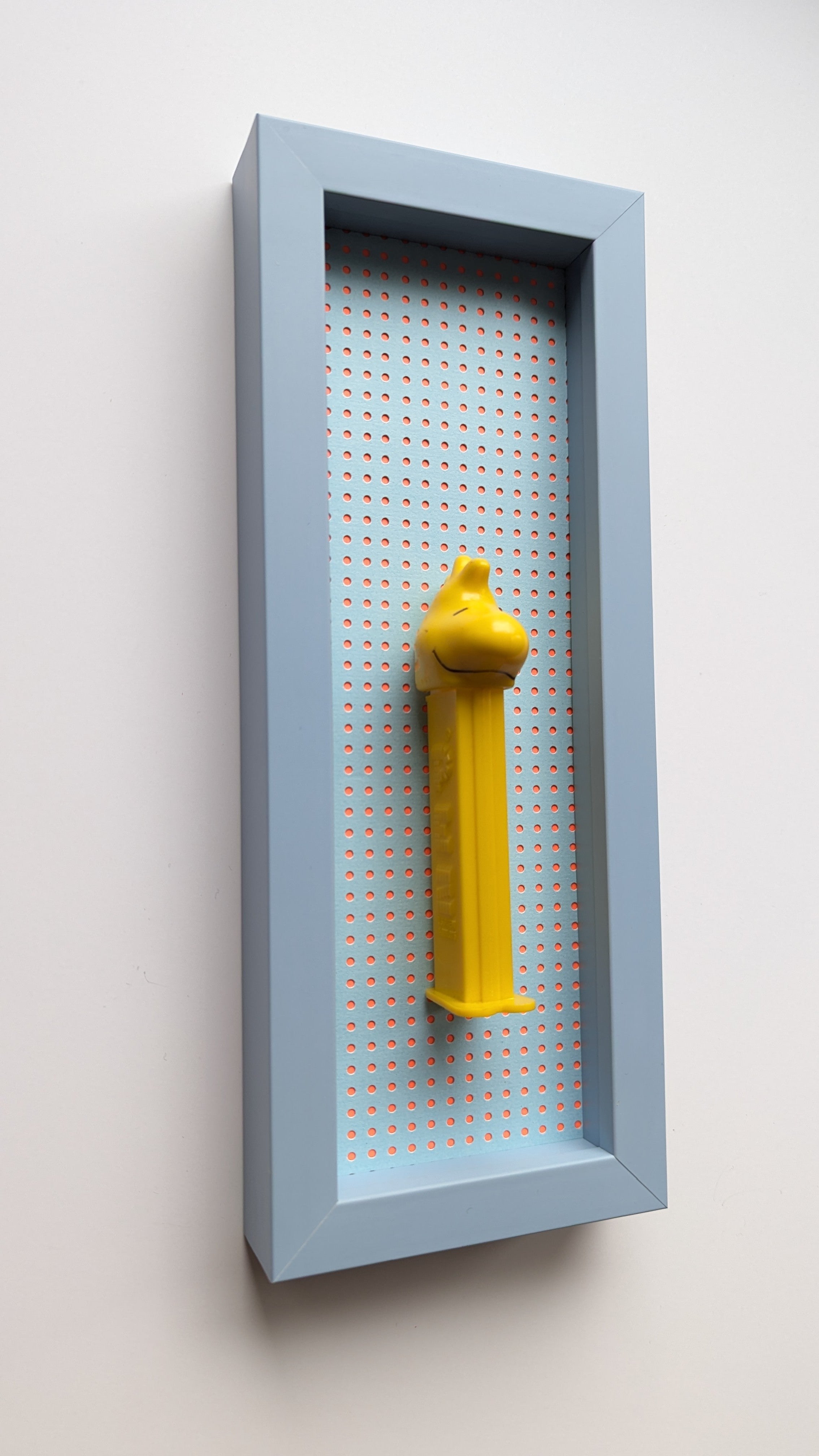 Jede Figur erzählt ihre eigene Geschichte – manche sind fast 50 Jahre alt und haben geduldig darauf gewartet, wiederentdeckt zu werden. Als wir die ersten PEZ-Spender auf einem Flohmarkt fanden, war sofort klar: Diese kleinen Schätze verdienen eine Bühne. Nach viel Tüftelei, dem Mix aus ausgewählten Materialien und liebevoller Handarbeit sind sie nun da – kleine Helden, kunstvoll in komplementären Farben gerahmt für deine Wände!