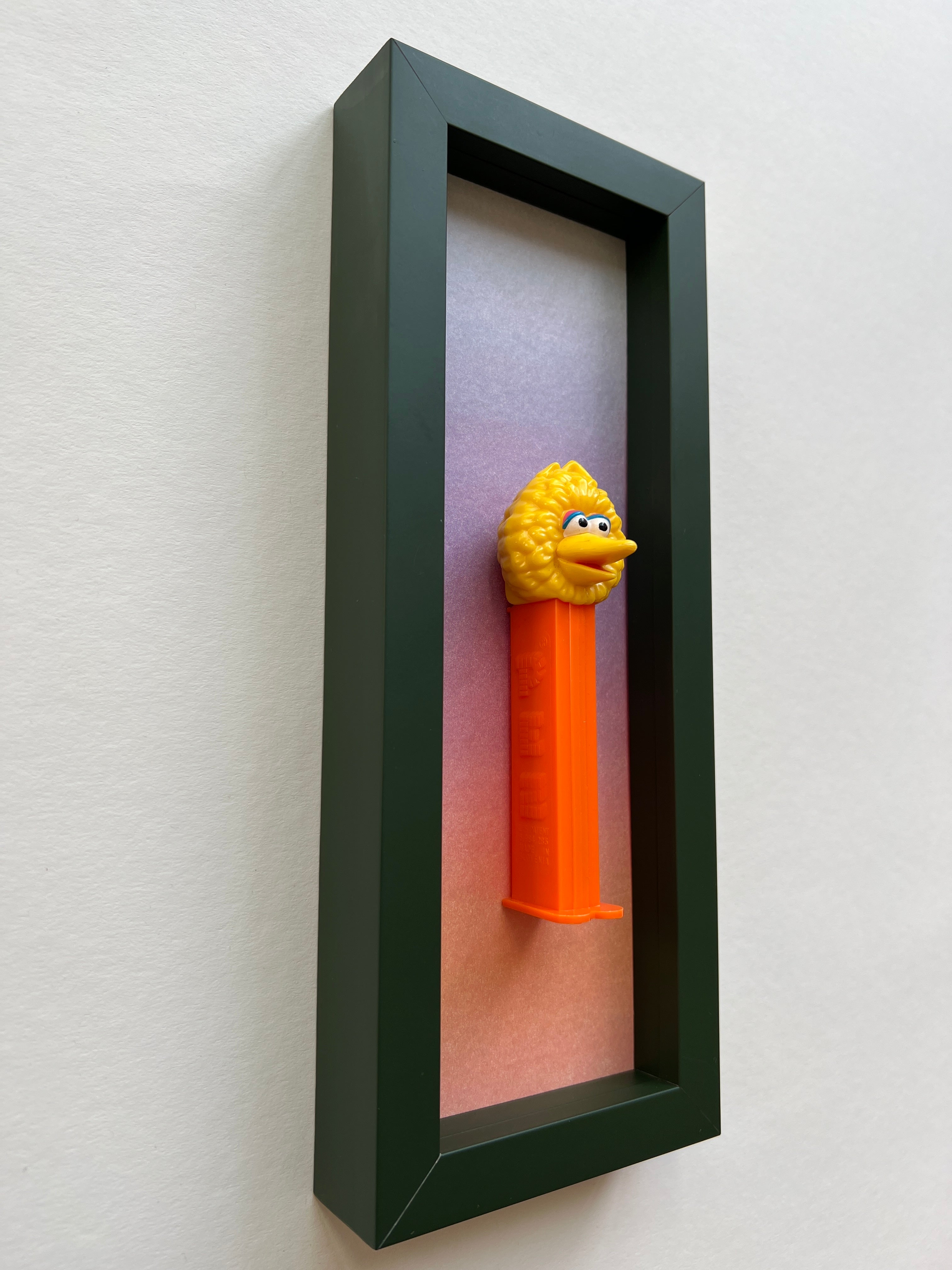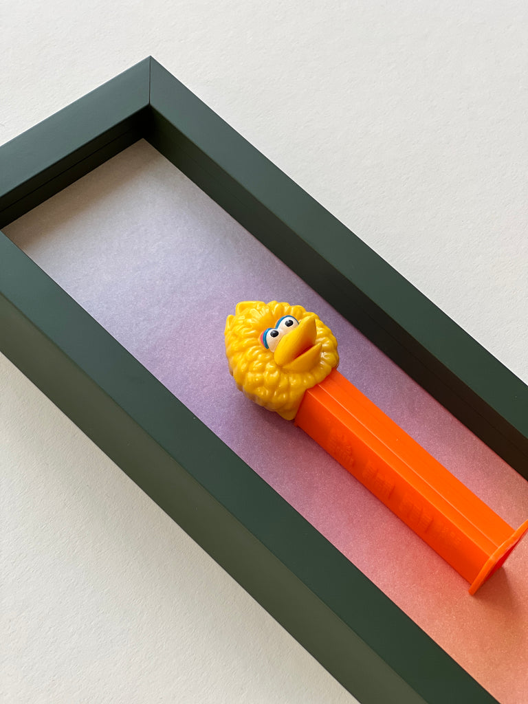 Jede Figur erzählt ihre eigene Geschichte – manche sind fast 50 Jahre alt und haben geduldig darauf gewartet, wiederentdeckt zu werden. Als wir die ersten PEZ-Spender auf einem Flohmarkt fanden, war sofort klar: Diese kleinen Schätze verdienen eine Bühne. Nach viel Tüftelei, dem Mix aus ausgewählten Materialien und liebevoller Handarbeit sind sie nun da – kleine Helden, kunstvoll in komplementären Farben gerahmt für deine Wände!