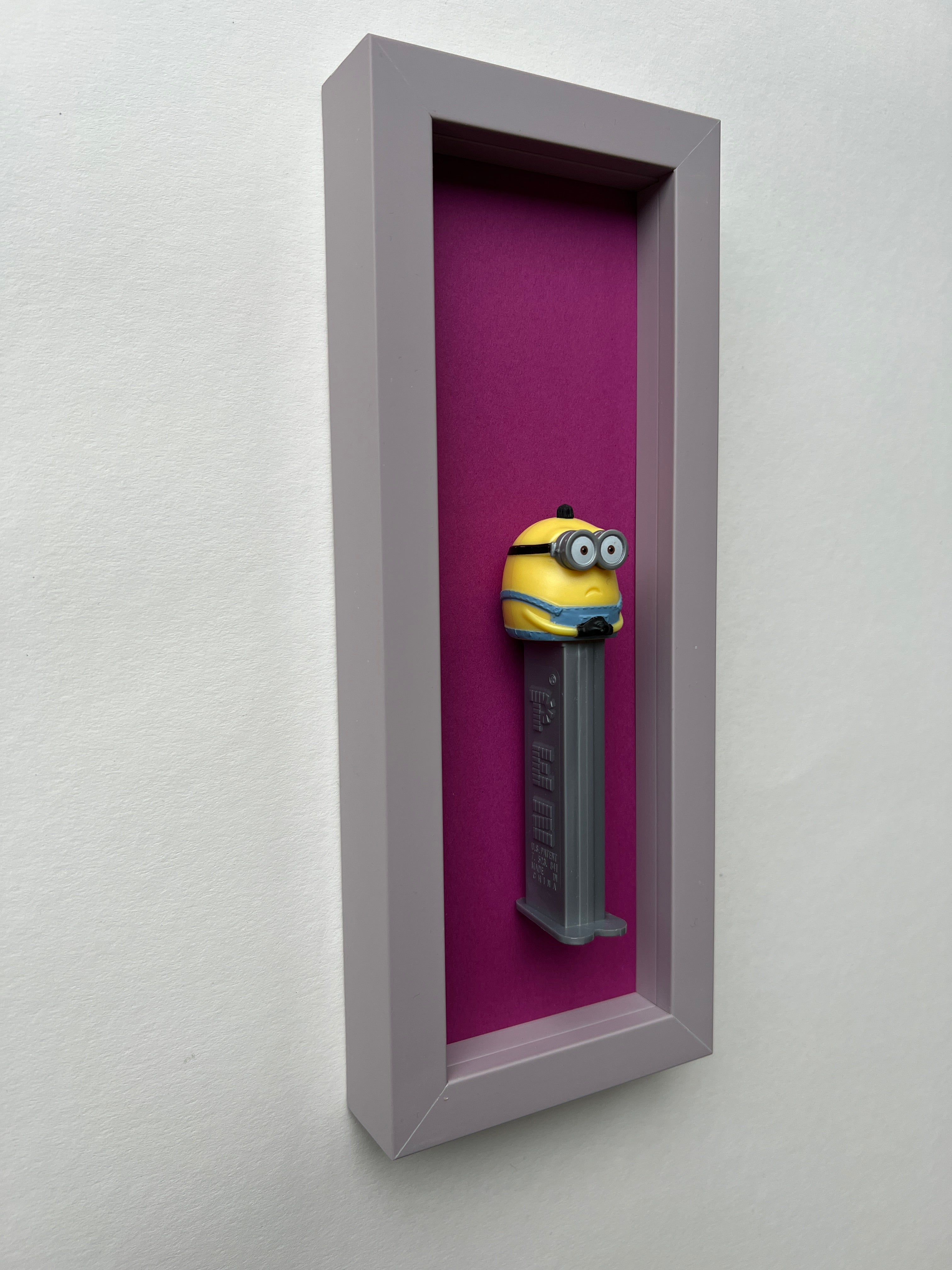 Jede Figur erzählt ihre eigene Geschichte – manche sind fast 50 Jahre alt und haben geduldig darauf gewartet, wiederentdeckt zu werden. Als wir die ersten PEZ-Spender auf einem Flohmarkt fanden, war sofort klar: Diese kleinen Schätze verdienen eine Bühne. Nach viel Tüftelei, dem Mix aus ausgewählten Materialien und liebevoller Handarbeit sind sie nun da – kleine Helden, kunstvoll in komplementären Farben gerahmt für deine Wände!