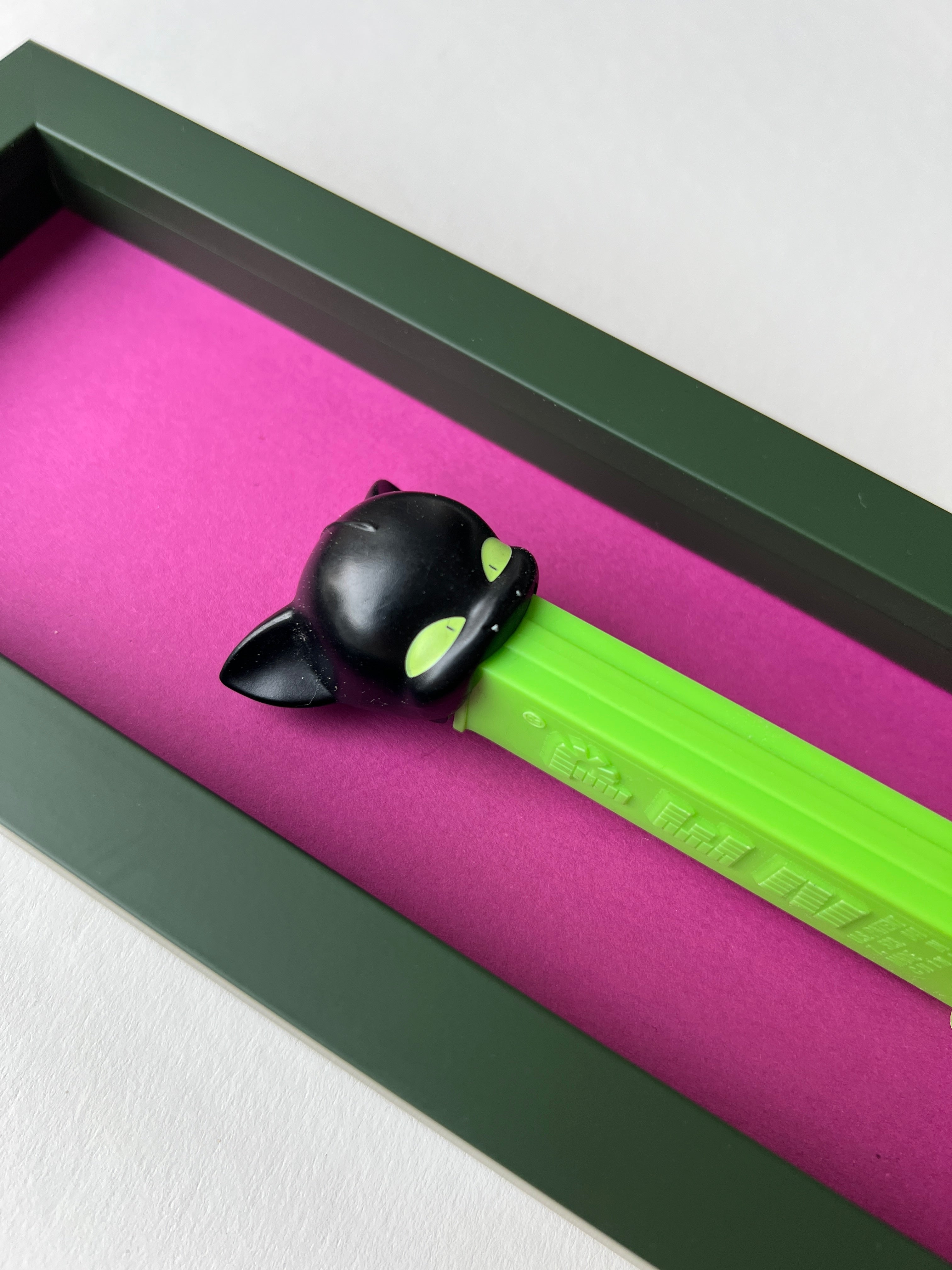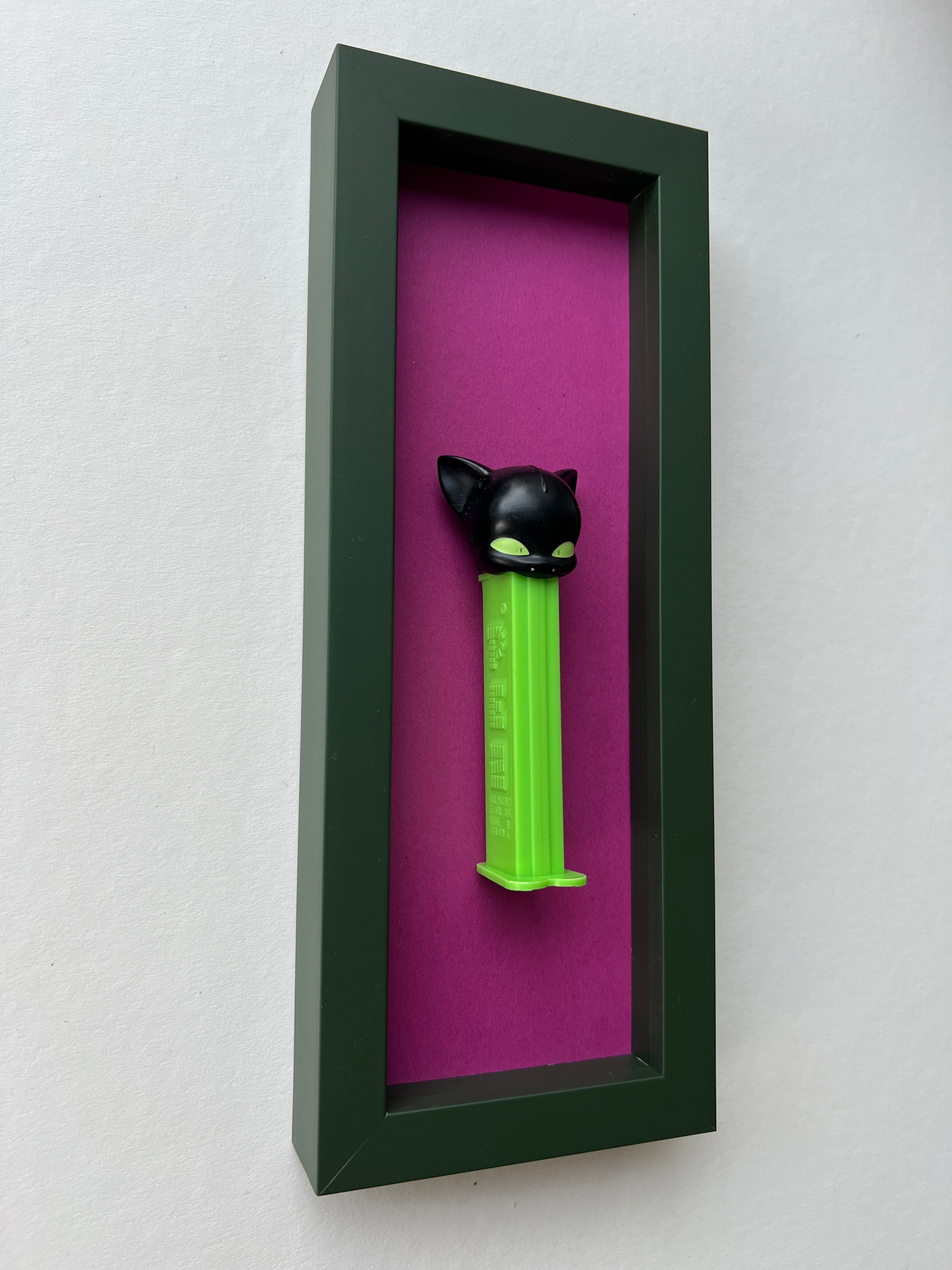Jede Figur erzählt ihre eigene Geschichte – manche sind fast 50 Jahre alt und haben geduldig darauf gewartet, wiederentdeckt zu werden. Als wir die ersten PEZ-Spender auf einem Flohmarkt fanden, war sofort klar: Diese kleinen Schätze verdienen eine Bühne. Nach viel Tüftelei, dem Mix aus ausgewählten Materialien und liebevoller Handarbeit sind sie nun da – kleine Helden, kunstvoll in komplementären Farben gerahmt für deine Wände!