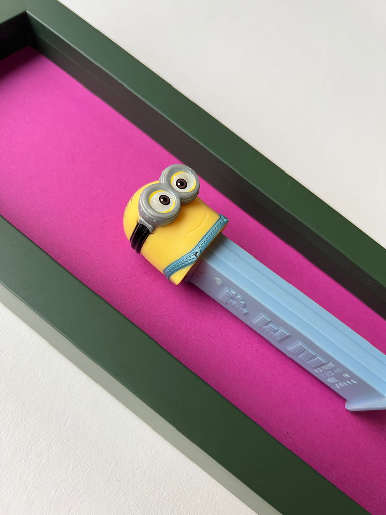 Jede Figur erzählt ihre eigene Geschichte – manche sind fast 50 Jahre alt und haben geduldig darauf gewartet, wiederentdeckt zu werden. Als wir die ersten PEZ-Spender auf einem Flohmarkt fanden, war sofort klar: Diese kleinen Schätze verdienen eine Bühne. Nach viel Tüftelei, dem Mix aus ausgewählten Materialien und liebevoller Handarbeit sind sie nun da – kleine Helden, kunstvoll in komplementären Farben gerahmt für deine Wände!