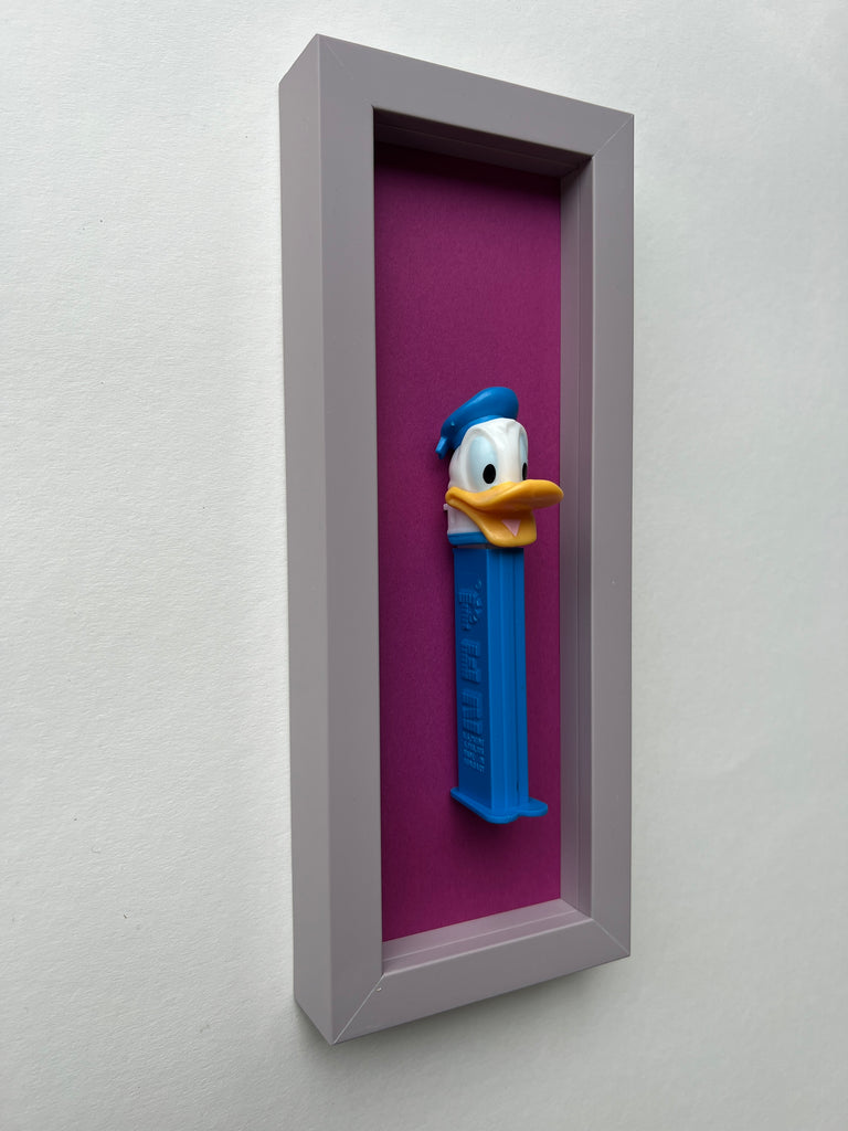 Jede Figur erzählt ihre eigene Geschichte – manche sind fast 50 Jahre alt und haben geduldig darauf gewartet, wiederentdeckt zu werden. Als wir die ersten PEZ-Spender auf einem Flohmarkt fanden, war sofort klar: Diese kleinen Schätze verdienen eine Bühne. Nach viel Tüftelei, dem Mix aus ausgewählten Materialien und liebevoller Handarbeit sind sie nun da – kleine Helden, kunstvoll in komplementären Farben gerahmt für deine Wände!