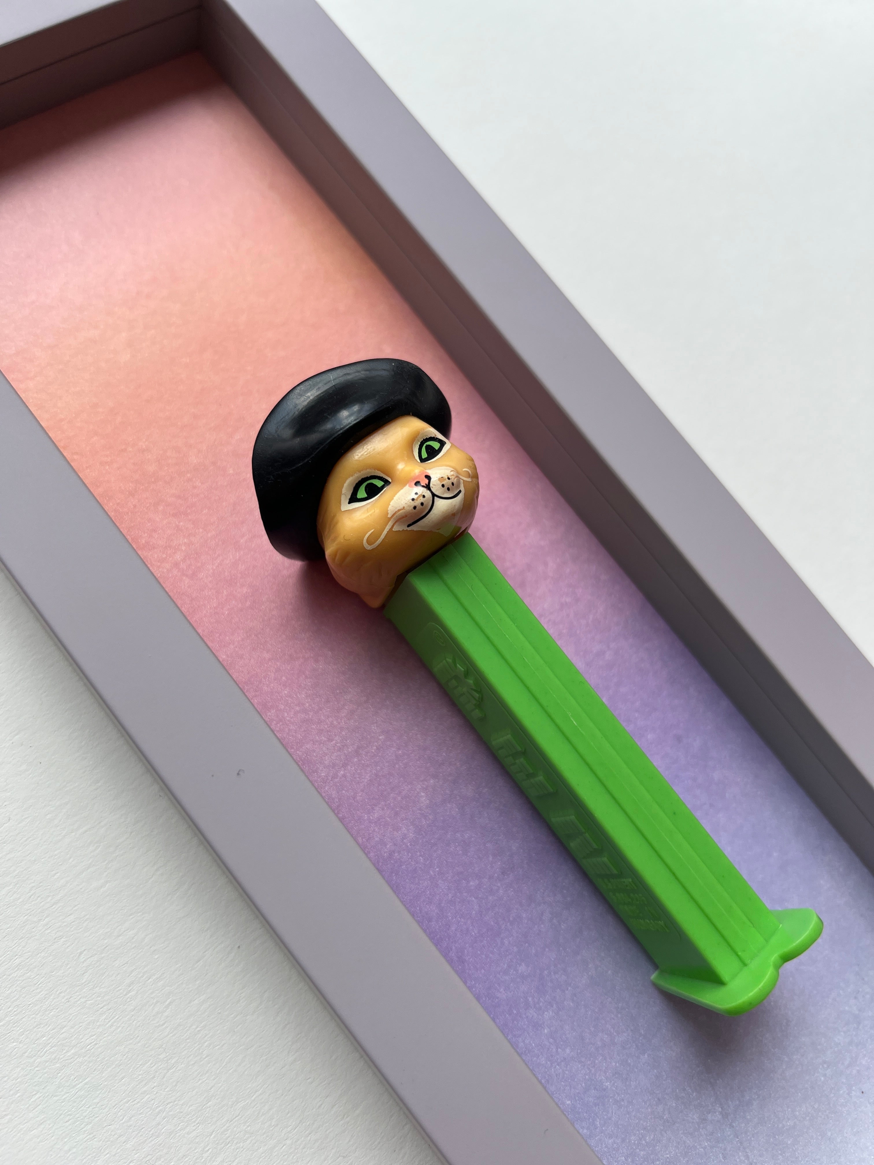 Jede Figur erzählt ihre eigene Geschichte – manche sind fast 50 Jahre alt und haben geduldig darauf gewartet, wiederentdeckt zu werden. Als wir die ersten PEZ-Spender auf einem Flohmarkt fanden, war sofort klar: Diese kleinen Schätze verdienen eine Bühne. Nach viel Tüftelei, dem Mix aus ausgewählten Materialien und liebevoller Handarbeit sind sie nun da – kleine Helden, kunstvoll in komplementären Farben gerahmt für deine Wände!