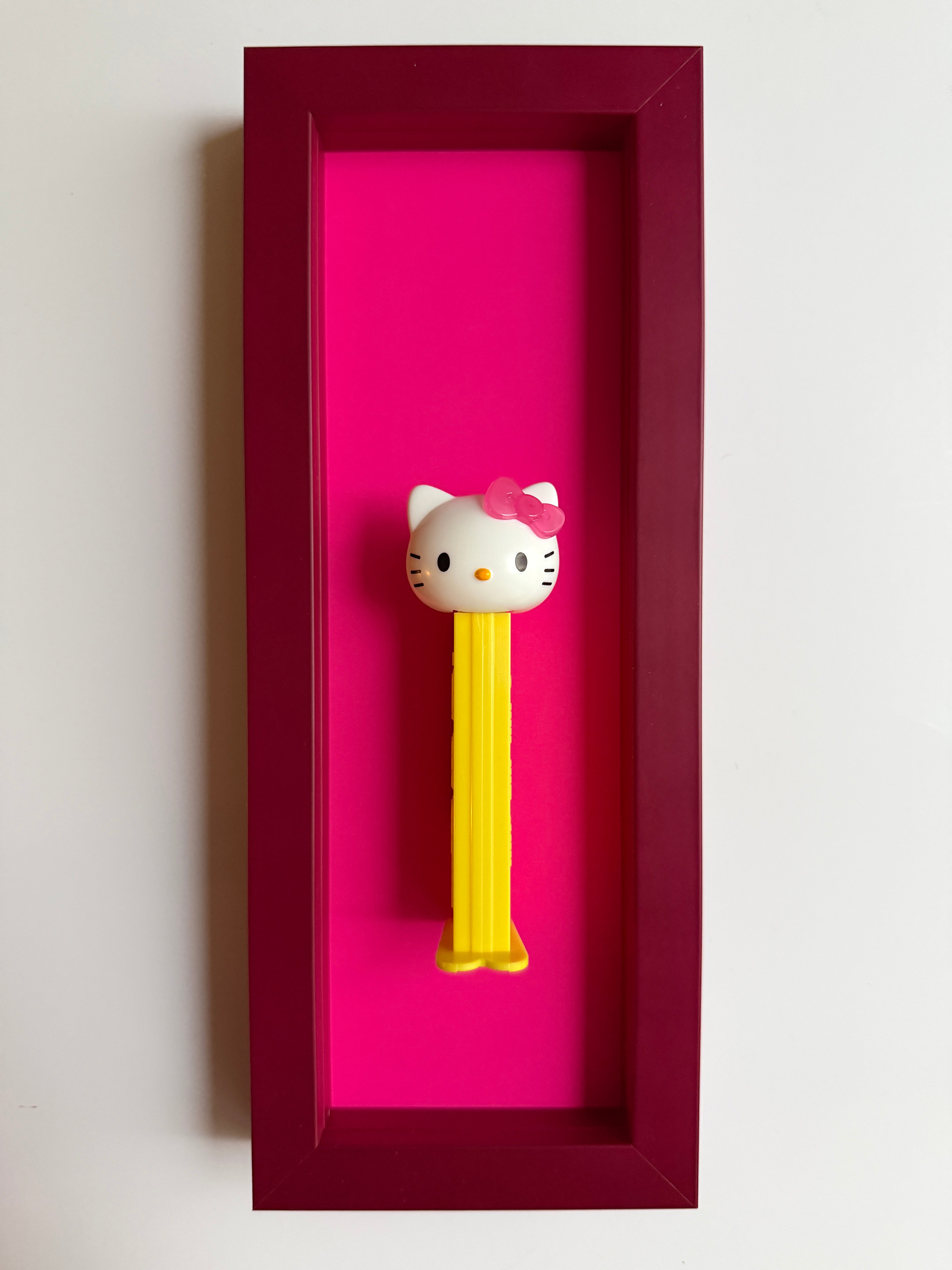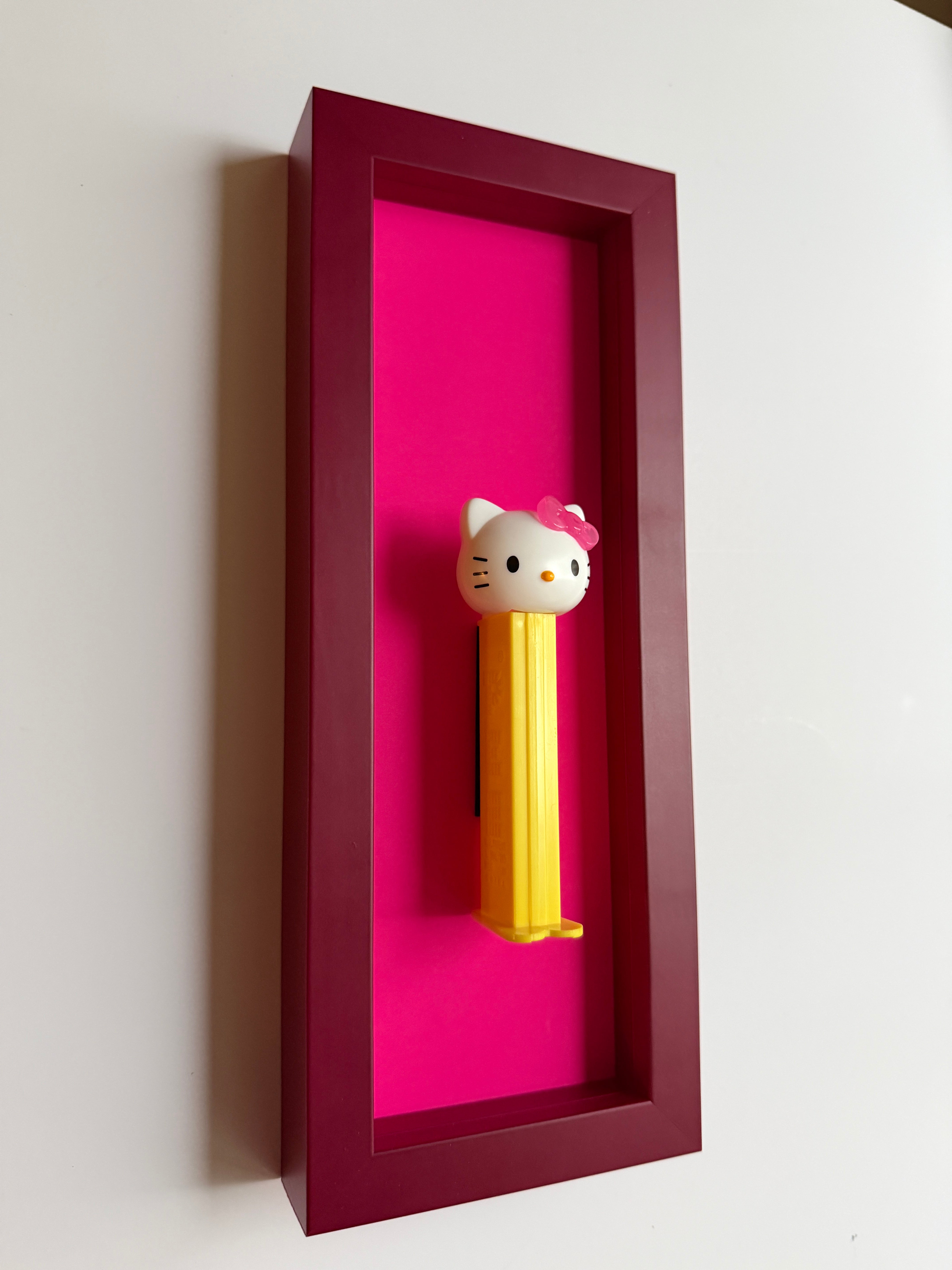 Jede Figur erzählt ihre eigene Geschichte – manche sind fast 50 Jahre alt und haben geduldig darauf gewartet, wiederentdeckt zu werden. Als wir die ersten PEZ-Spender auf einem Flohmarkt fanden, war sofort klar: Diese kleinen Schätze verdienen eine Bühne. Nach viel Tüftelei, dem Mix aus ausgewählten Materialien und liebevoller Handarbeit sind sie nun da – kleine Helden, kunstvoll in komplementären Farben gerahmt für deine Wände!