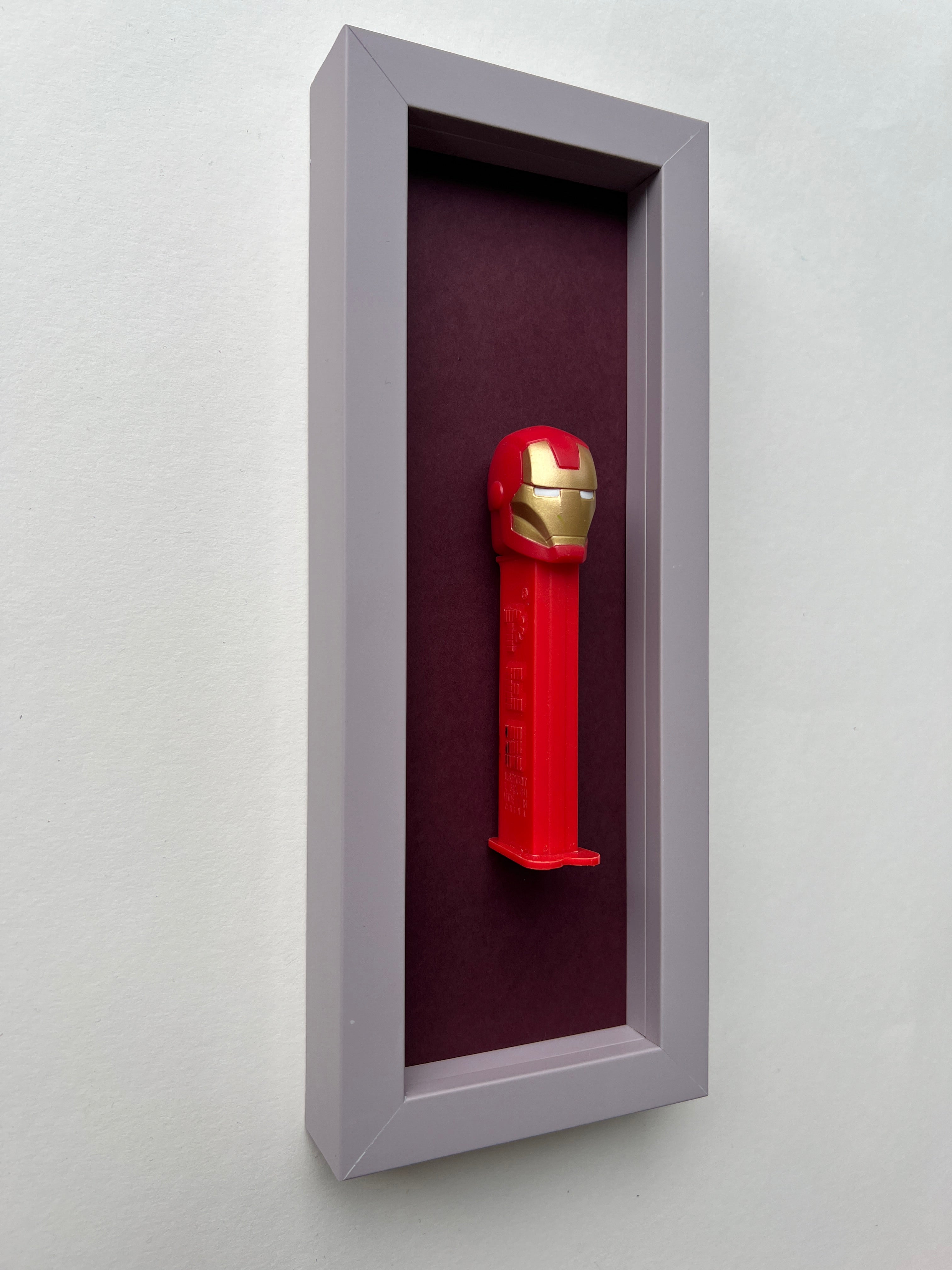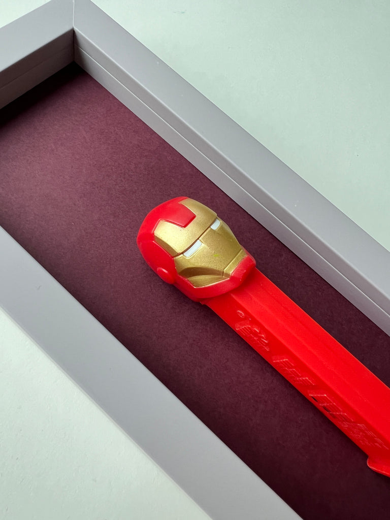 Jede Figur erzählt ihre eigene Geschichte – manche sind fast 50 Jahre alt und haben geduldig darauf gewartet, wiederentdeckt zu werden. Als wir die ersten PEZ-Spender auf einem Flohmarkt fanden, war sofort klar: Diese kleinen Schätze verdienen eine Bühne. Nach viel Tüftelei, dem Mix aus ausgewählten Materialien und liebevoller Handarbeit sind sie nun da – kleine Helden, kunstvoll in komplementären Farben gerahmt für deine Wände!