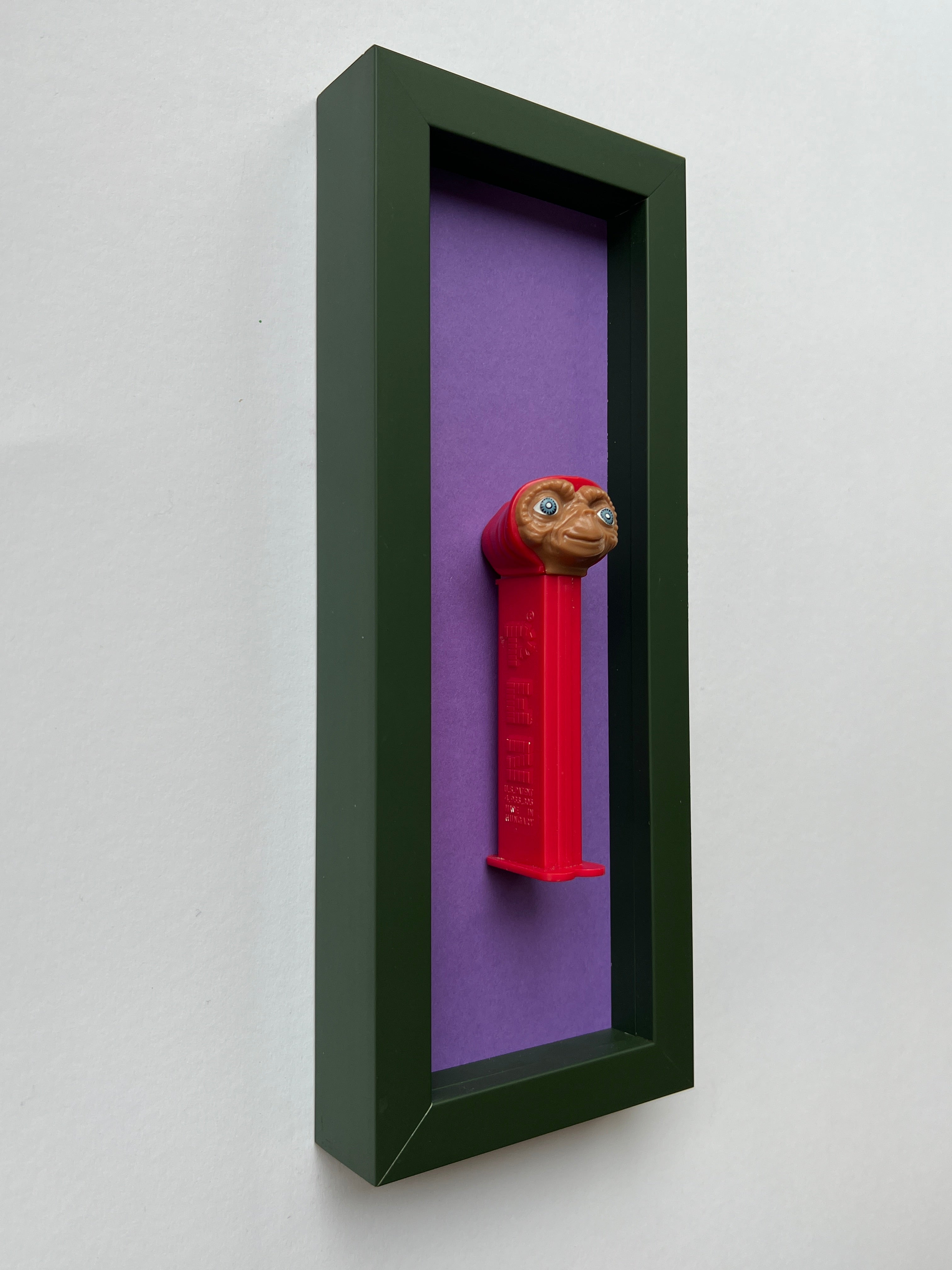 Jede Figur erzählt ihre eigene Geschichte – manche sind fast 50 Jahre alt und haben geduldig darauf gewartet, wiederentdeckt zu werden. Als wir die ersten PEZ-Spender auf einem Flohmarkt fanden, war sofort klar: Diese kleinen Schätze verdienen eine Bühne. Nach viel Tüftelei, dem Mix aus ausgewählten Materialien und liebevoller Handarbeit sind sie nun da – kleine Helden, kunstvoll in komplementären Farben gerahmt für deine Wände!