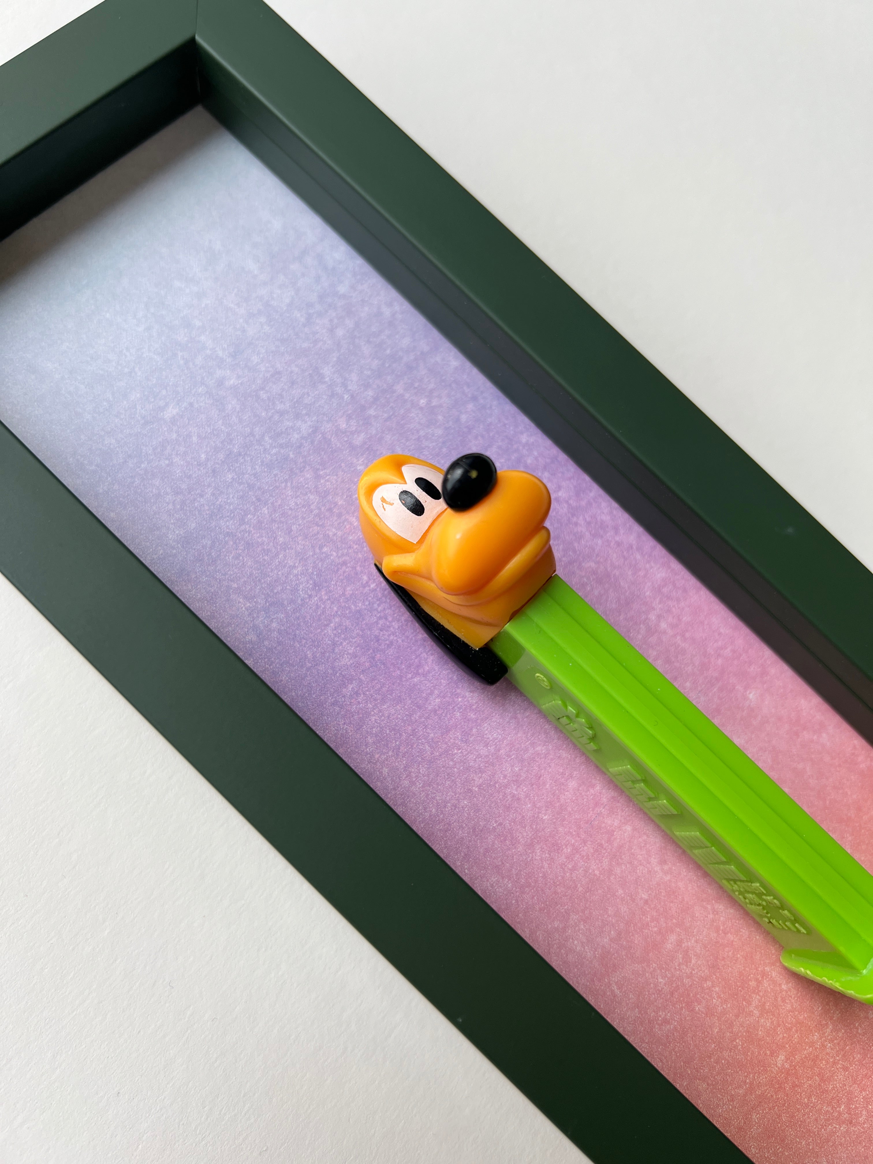 Jede Figur erzählt ihre eigene Geschichte – manche sind fast 50 Jahre alt und haben geduldig darauf gewartet, wiederentdeckt zu werden. Als wir die ersten PEZ-Spender auf einem Flohmarkt fanden, war sofort klar: Diese kleinen Schätze verdienen eine Bühne. Nach viel Tüftelei, dem Mix aus ausgewählten Materialien und liebevoller Handarbeit sind sie nun da – kleine Helden, kunstvoll in komplementären Farben gerahmt für deine Wände!
