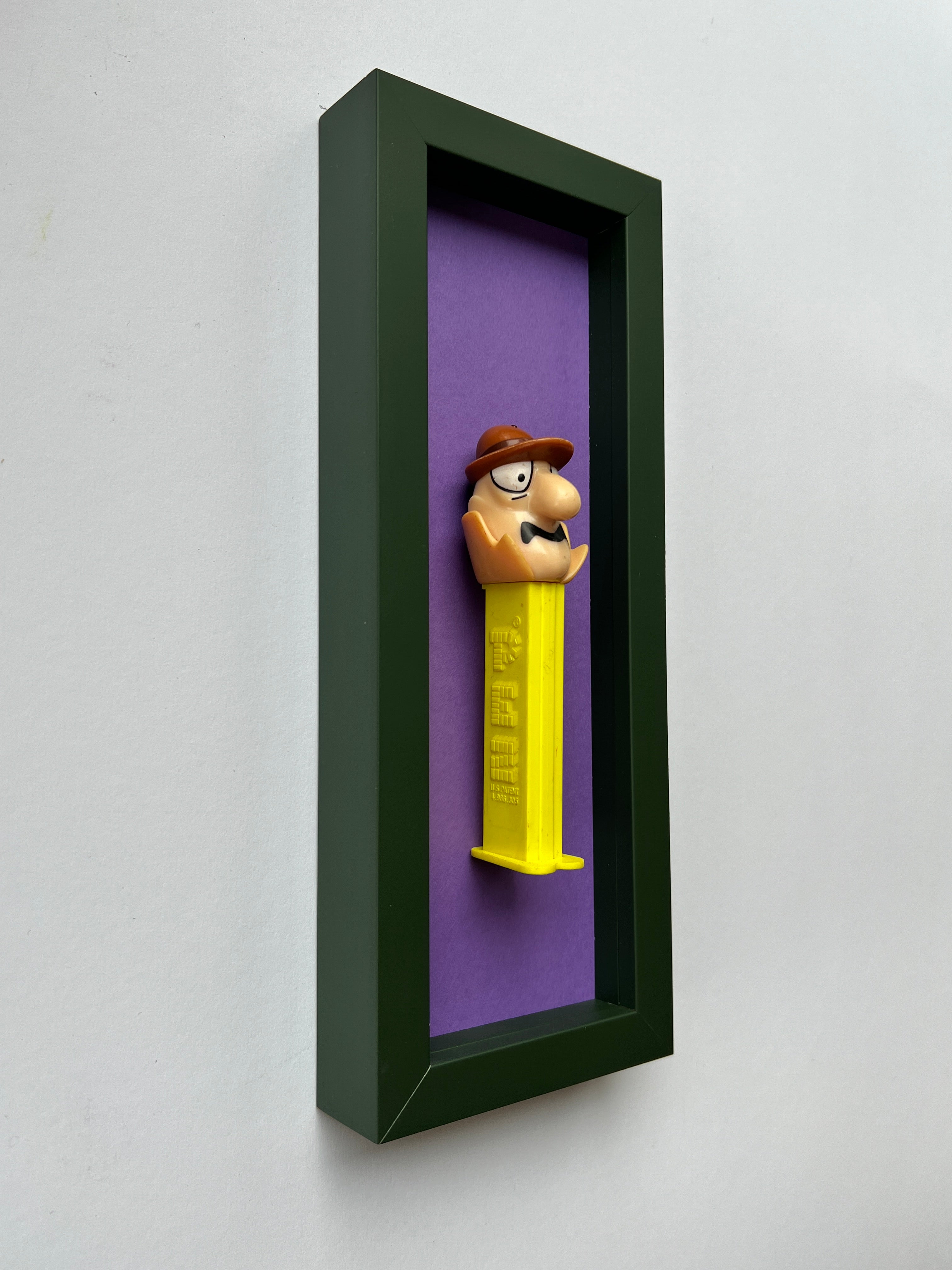 Jede Figur erzählt ihre eigene Geschichte – manche sind fast 50 Jahre alt und haben geduldig darauf gewartet, wiederentdeckt zu werden. Als wir die ersten PEZ-Spender auf einem Flohmarkt fanden, war sofort klar: Diese kleinen Schätze verdienen eine Bühne. Nach viel Tüftelei, dem Mix aus ausgewählten Materialien und liebevoller Handarbeit sind sie nun da – kleine Helden, kunstvoll in komplementären Farben gerahmt für deine Wände!