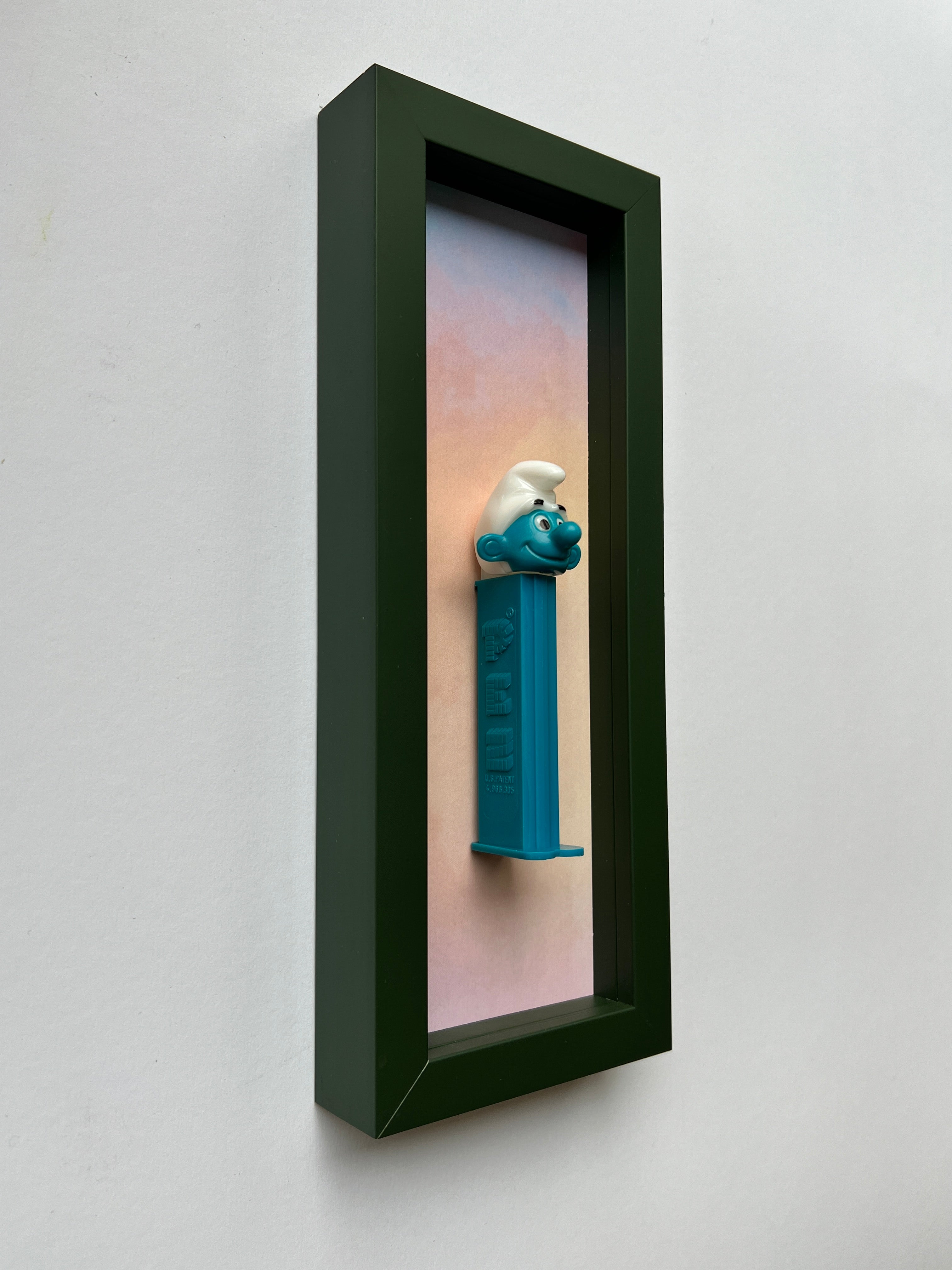 Jede Figur erzählt ihre eigene Geschichte – manche sind fast 50 Jahre alt und haben geduldig darauf gewartet, wiederentdeckt zu werden. Als wir die ersten PEZ-Spender auf einem Flohmarkt fanden, war sofort klar: Diese kleinen Schätze verdienen eine Bühne. Nach viel Tüftelei, dem Mix aus ausgewählten Materialien und liebevoller Handarbeit sind sie nun da – kleine Helden, kunstvoll in komplementären Farben gerahmt für deine Wände!