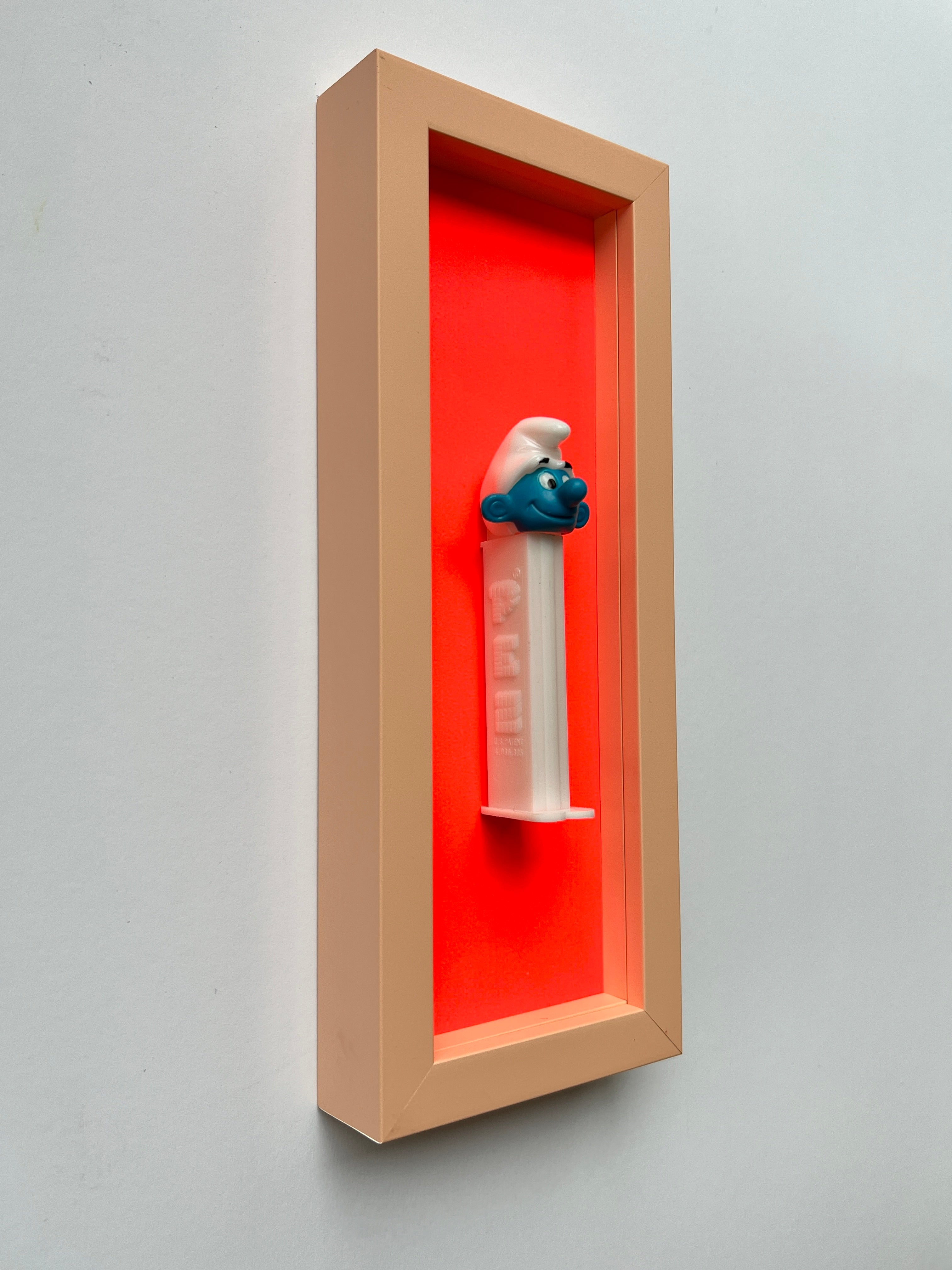 Jede Figur erzählt ihre eigene Geschichte – manche sind fast 50 Jahre alt und haben geduldig darauf gewartet, wiederentdeckt zu werden. Als wir die ersten PEZ-Spender auf einem Flohmarkt fanden, war sofort klar: Diese kleinen Schätze verdienen eine Bühne. Nach viel Tüftelei, dem Mix aus ausgewählten Materialien und liebevoller Handarbeit sind sie nun da – kleine Helden, kunstvoll in komplementären Farben gerahmt für deine Wände!