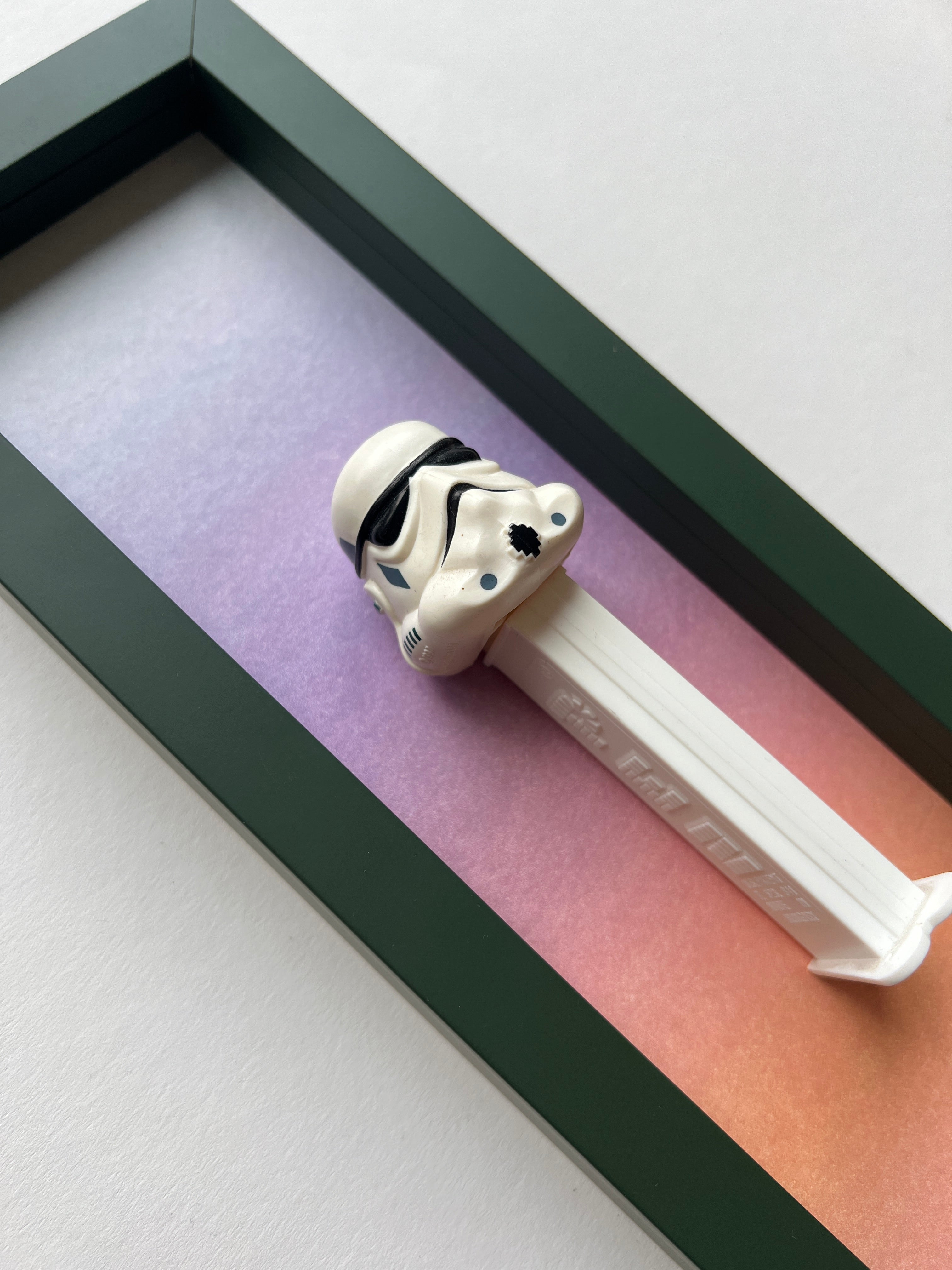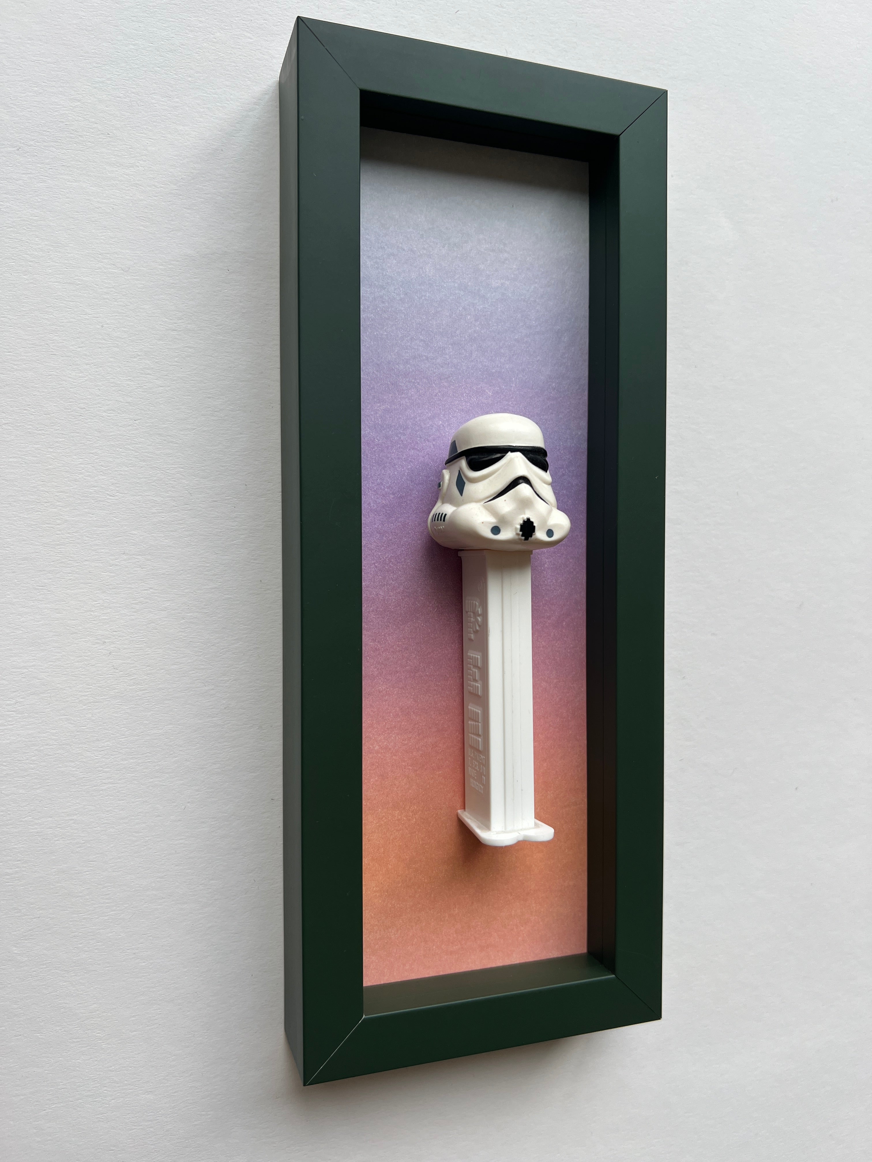 Jede Figur erzählt ihre eigene Geschichte – manche sind fast 50 Jahre alt und haben geduldig darauf gewartet, wiederentdeckt zu werden. Als wir die ersten PEZ-Spender auf einem Flohmarkt fanden, war sofort klar: Diese kleinen Schätze verdienen eine Bühne. Nach viel Tüftelei, dem Mix aus ausgewählten Materialien und liebevoller Handarbeit sind sie nun da – kleine Helden, kunstvoll in komplementären Farben gerahmt für deine Wände!