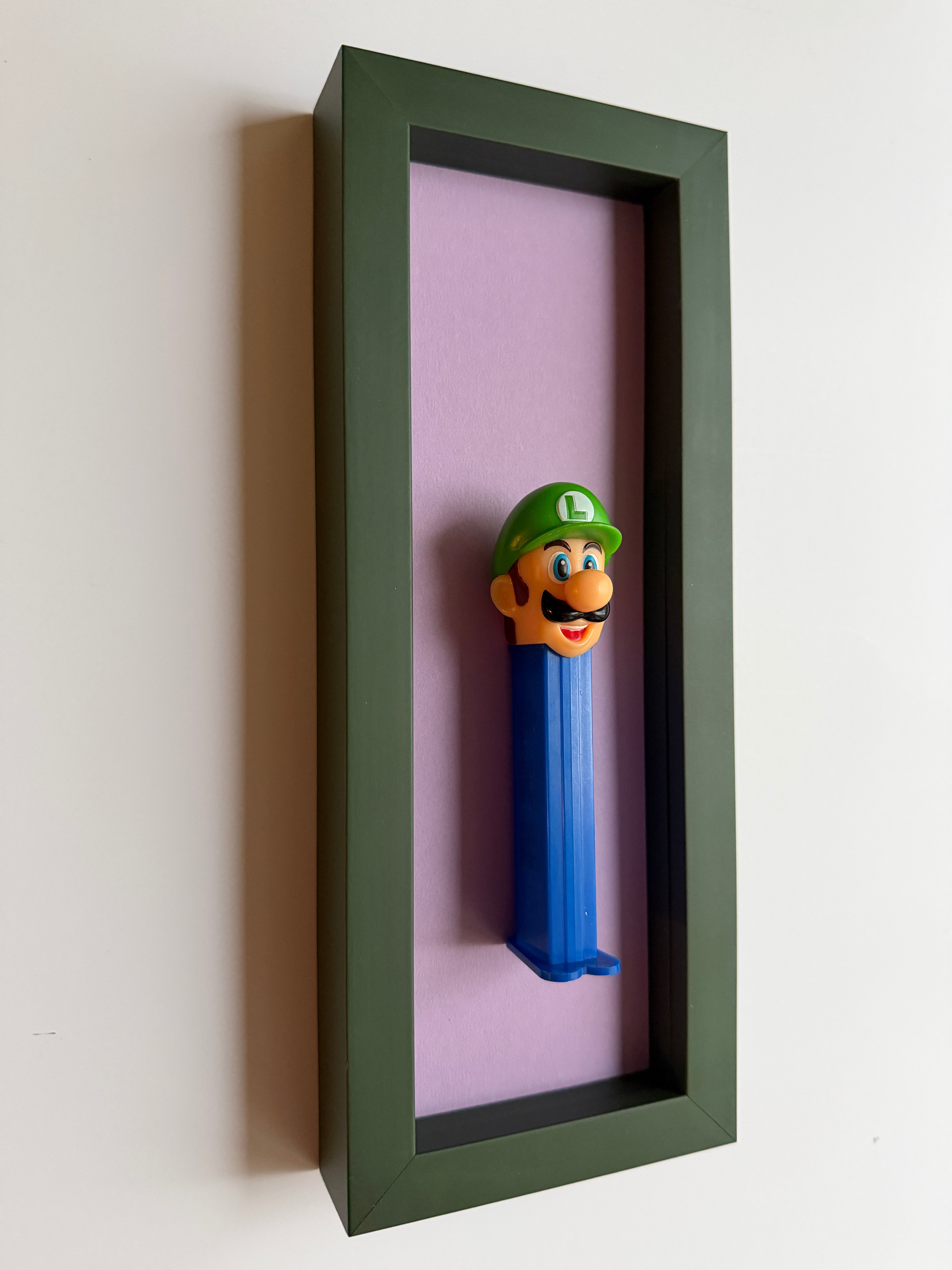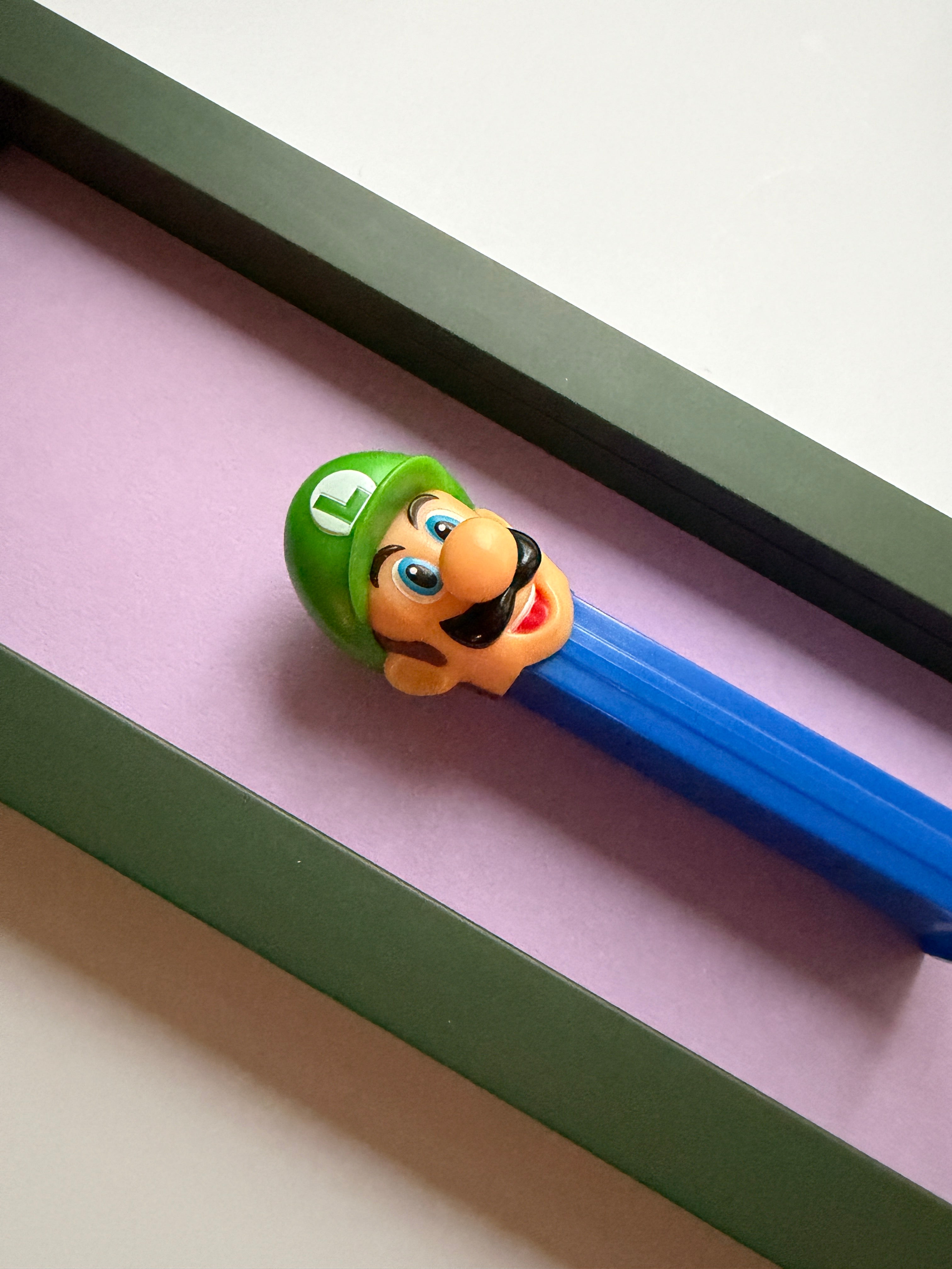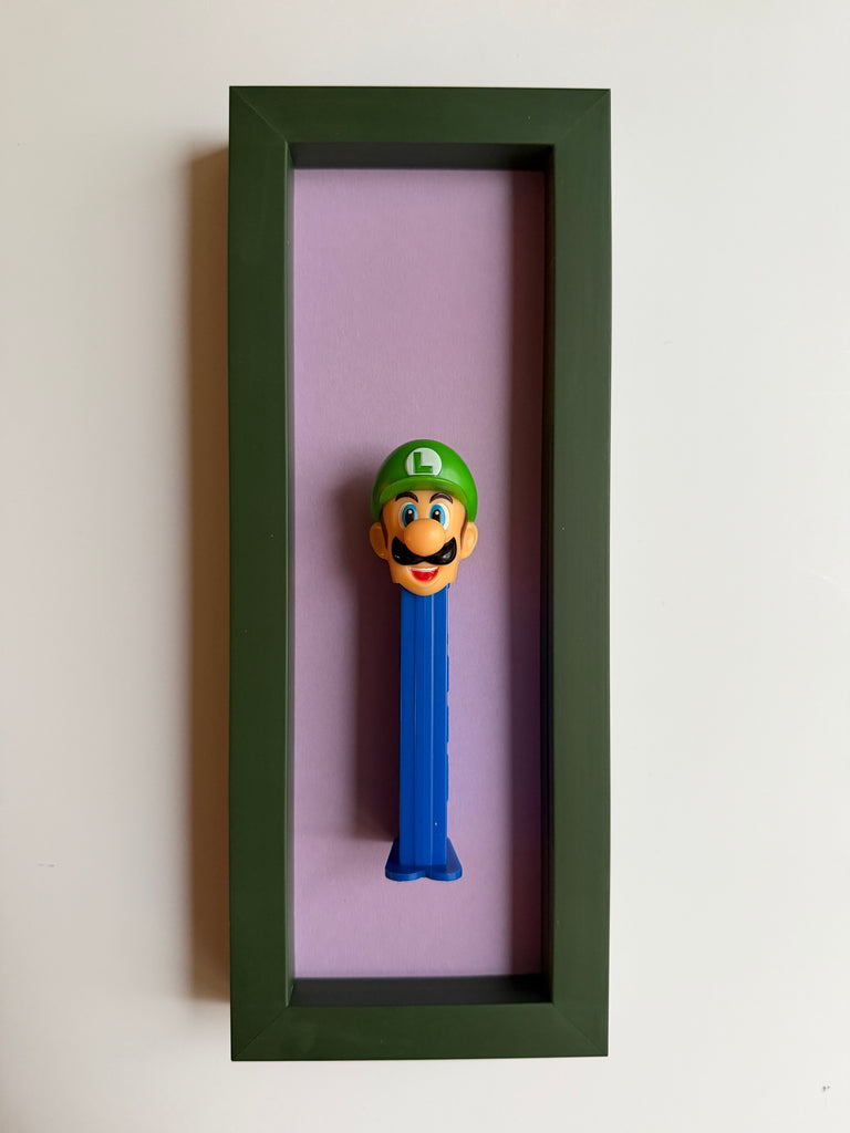 Jede Figur erzählt ihre eigene Geschichte – manche sind fast 50 Jahre alt und haben geduldig darauf gewartet, wiederentdeckt zu werden. Als wir die ersten PEZ-Spender auf einem Flohmarkt fanden, war sofort klar: Diese kleinen Schätze verdienen eine Bühne. Nach viel Tüftelei, dem Mix aus ausgewählten Materialien und liebevoller Handarbeit sind sie nun da – kleine Helden, kunstvoll in komplementären Farben gerahmt für deine Wände!