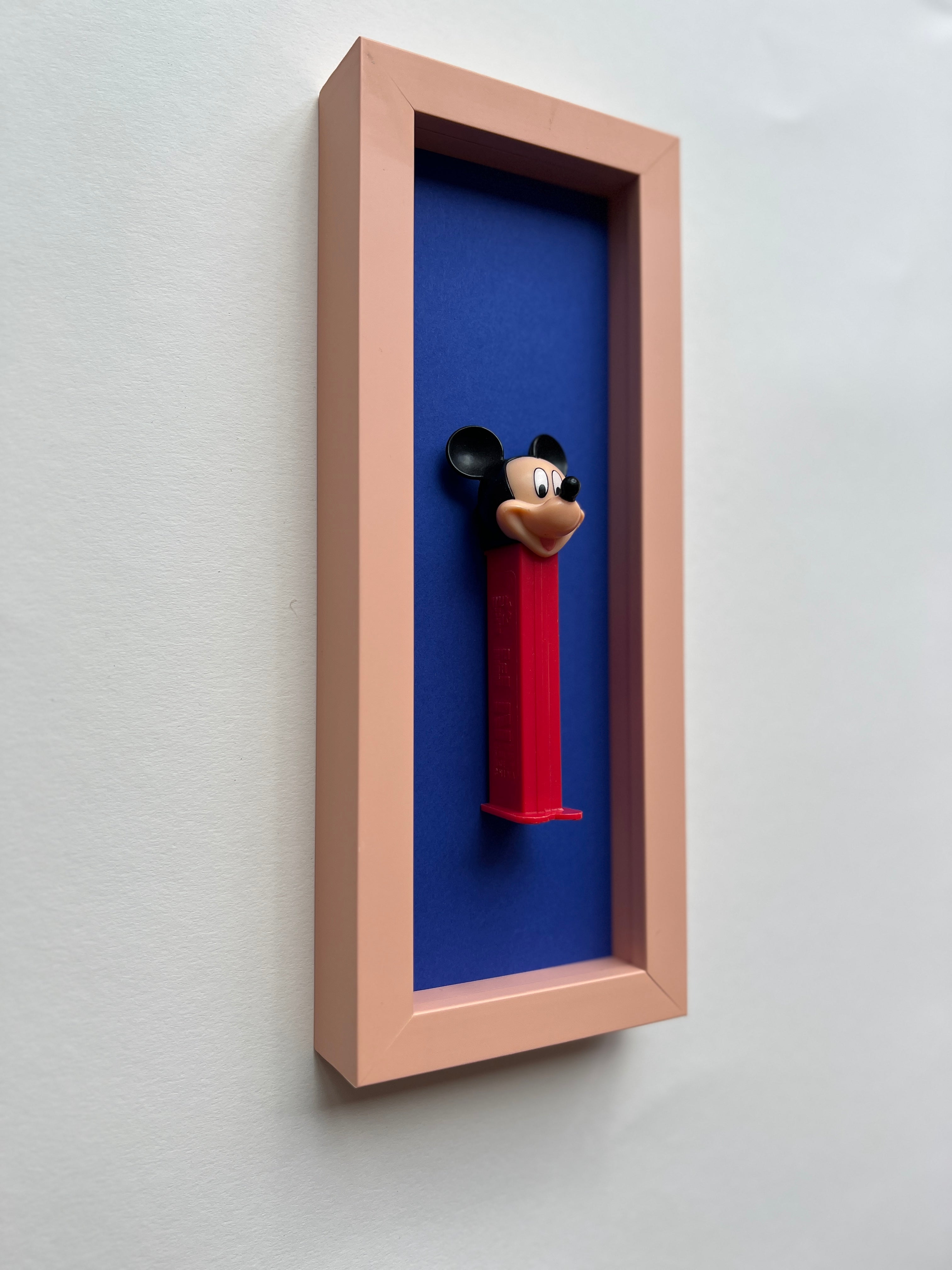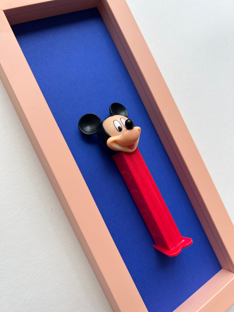 Jede Figur erzählt ihre eigene Geschichte – manche sind fast 50 Jahre alt und haben geduldig darauf gewartet, wiederentdeckt zu werden. Als wir die ersten PEZ-Spender auf einem Flohmarkt fanden, war sofort klar: Diese kleinen Schätze verdienen eine Bühne. Nach viel Tüftelei, dem Mix aus ausgewählten Materialien und liebevoller Handarbeit sind sie nun da – kleine Helden, kunstvoll in komplementären Farben gerahmt für deine Wände!