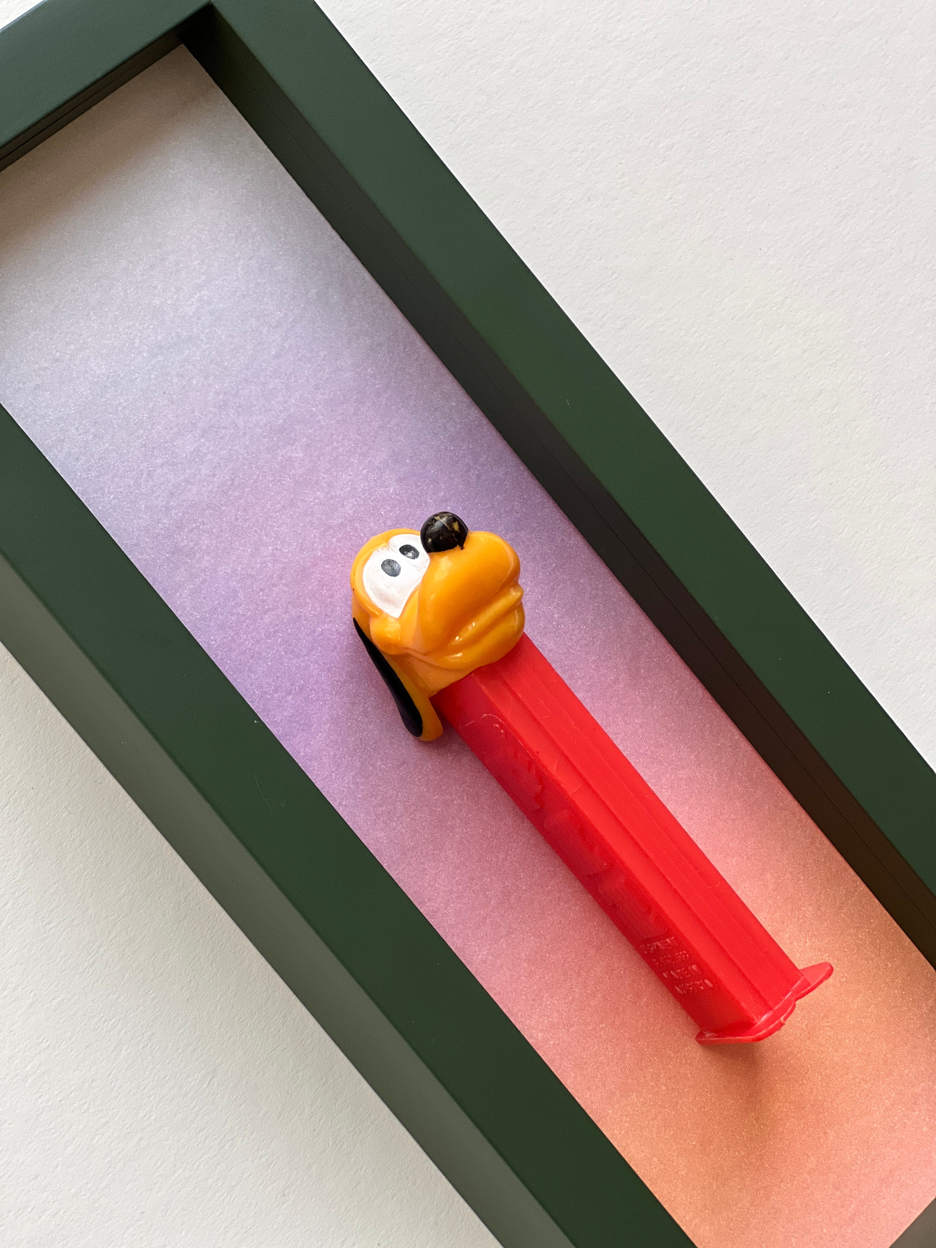 Jede Figur erzählt ihre eigene Geschichte – manche sind fast 50 Jahre alt und haben geduldig darauf gewartet, wiederentdeckt zu werden. Als wir die ersten PEZ-Spender auf einem Flohmarkt fanden, war sofort klar: Diese kleinen Schätze verdienen eine Bühne. Nach viel Tüftelei, dem Mix aus ausgewählten Materialien und liebevoller Handarbeit sind sie nun da – kleine Helden, kunstvoll in komplementären Farben gerahmt für deine Wände!