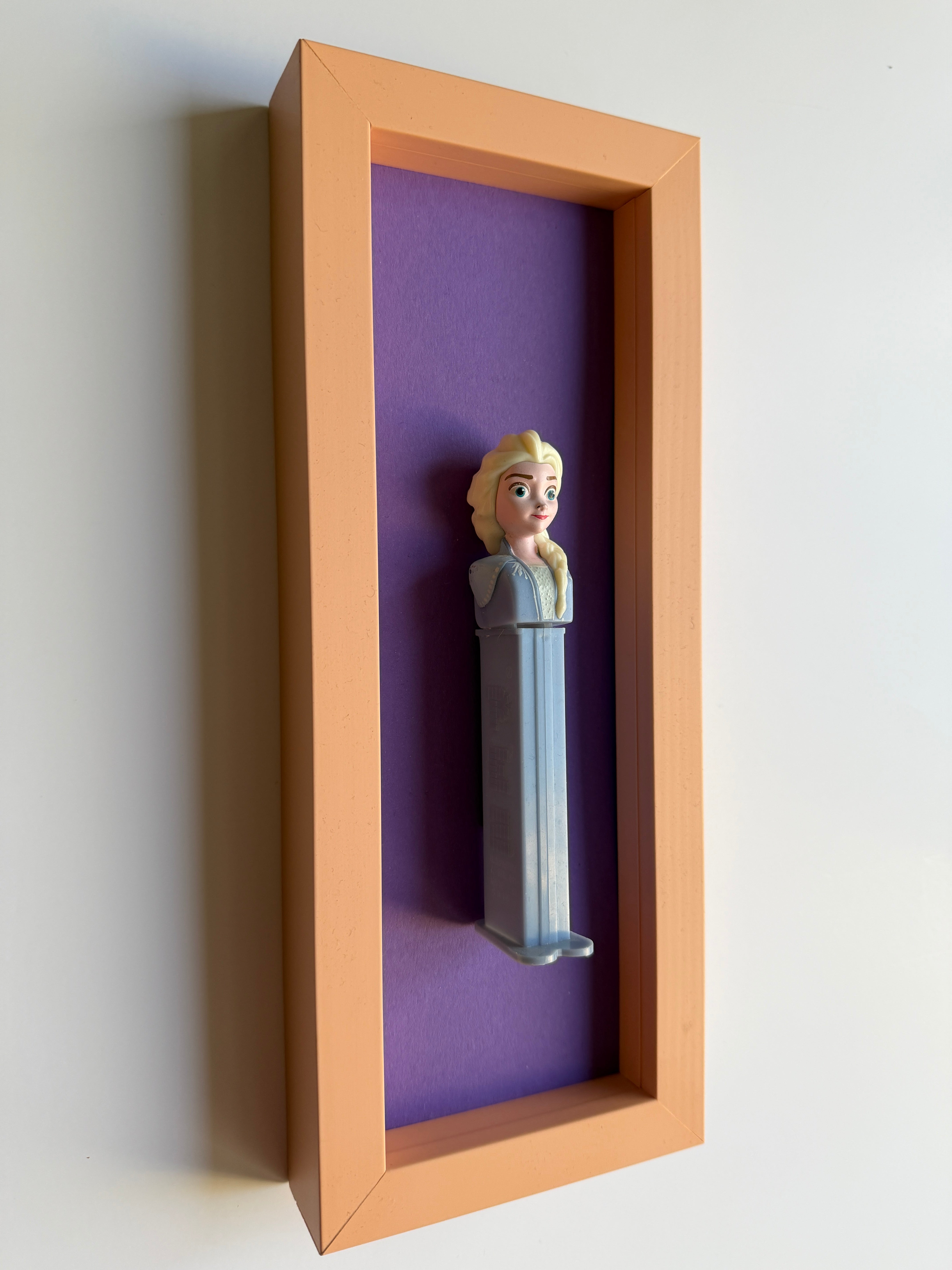 Jede Figur erzählt ihre eigene Geschichte – manche sind fast 50 Jahre alt und haben geduldig darauf gewartet, wiederentdeckt zu werden. Als wir die ersten PEZ-Spender auf einem Flohmarkt fanden, war sofort klar: Diese kleinen Schätze verdienen eine Bühne. Nach viel Tüftelei, dem Mix aus ausgewählten Materialien und liebevoller Handarbeit sind sie nun da – kleine Helden, kunstvoll in komplementären Farben gerahmt für deine Wände!