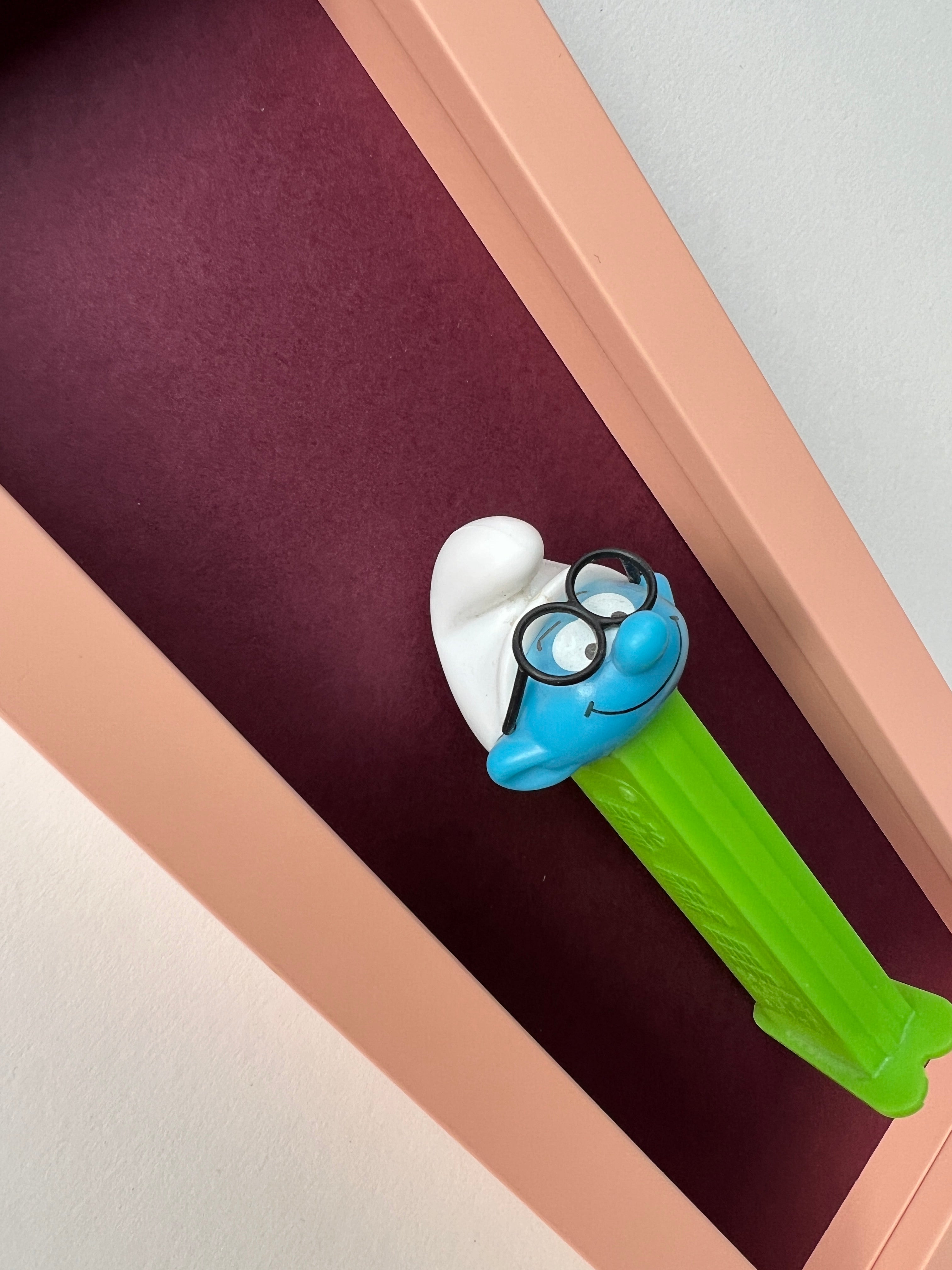 Jede Figur erzählt ihre eigene Geschichte – manche sind fast 50 Jahre alt und haben geduldig darauf gewartet, wiederentdeckt zu werden. Als wir die ersten PEZ-Spender auf einem Flohmarkt fanden, war sofort klar: Diese kleinen Schätze verdienen eine Bühne. Nach viel Tüftelei, dem Mix aus ausgewählten Materialien und liebevoller Handarbeit sind sie nun da – kleine Helden, kunstvoll in komplementären Farben gerahmt für deine Wände!
