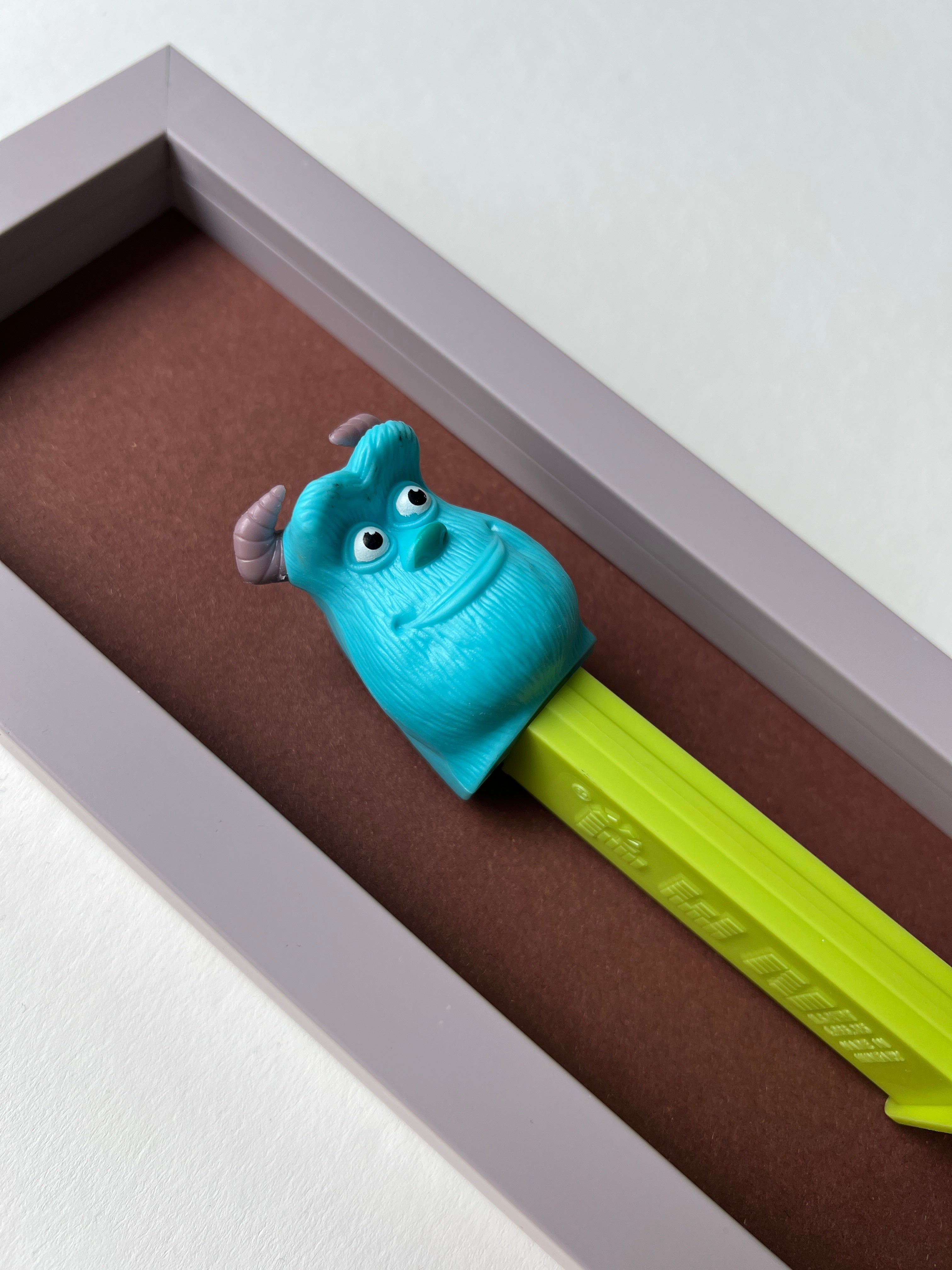 Jede Figur erzählt ihre eigene Geschichte – manche sind fast 50 Jahre alt und haben geduldig darauf gewartet, wiederentdeckt zu werden. Als wir die ersten PEZ-Spender auf einem Flohmarkt fanden, war sofort klar: Diese kleinen Schätze verdienen eine Bühne. Nach viel Tüftelei, dem Mix aus ausgewählten Materialien und liebevoller Handarbeit sind sie nun da – kleine Helden, kunstvoll in komplementären Farben gerahmt für deine Wände!