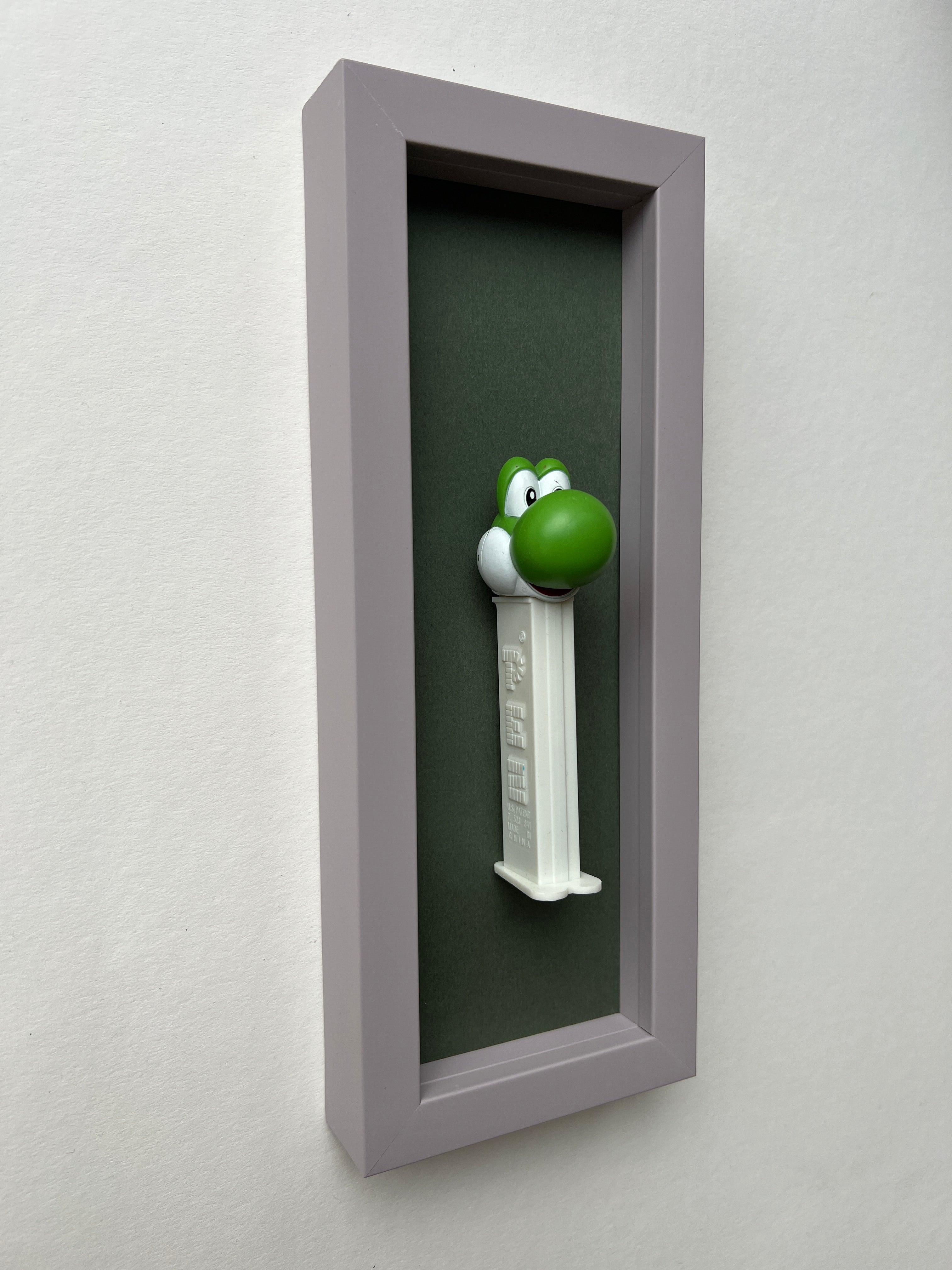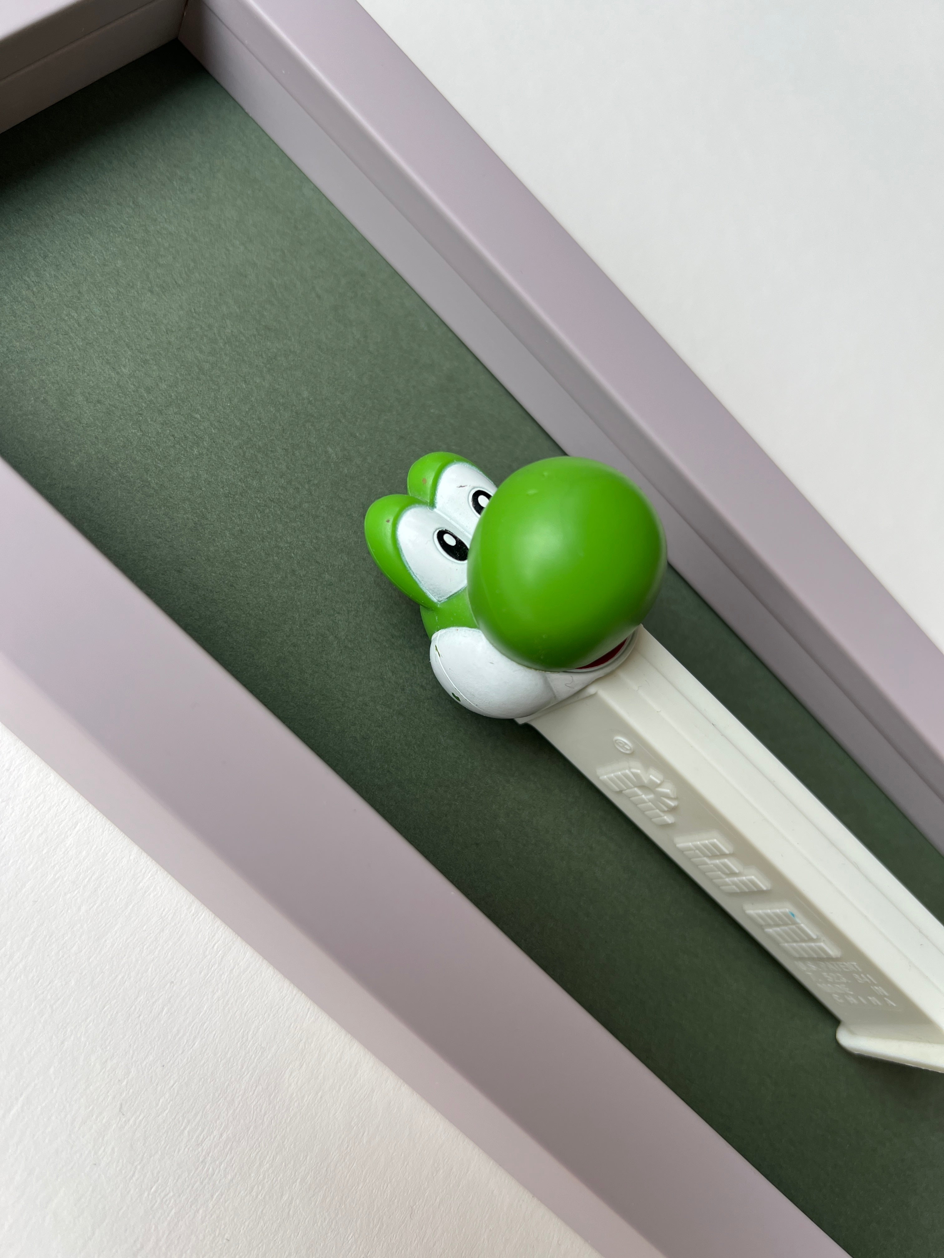 Jede Figur erzählt ihre eigene Geschichte – manche sind fast 50 Jahre alt und haben geduldig darauf gewartet, wiederentdeckt zu werden. Als wir die ersten PEZ-Spender auf einem Flohmarkt fanden, war sofort klar: Diese kleinen Schätze verdienen eine Bühne. Nach viel Tüftelei, dem Mix aus ausgewählten Materialien und liebevoller Handarbeit sind sie nun da – kleine Helden, kunstvoll in komplementären Farben gerahmt für deine Wände!
