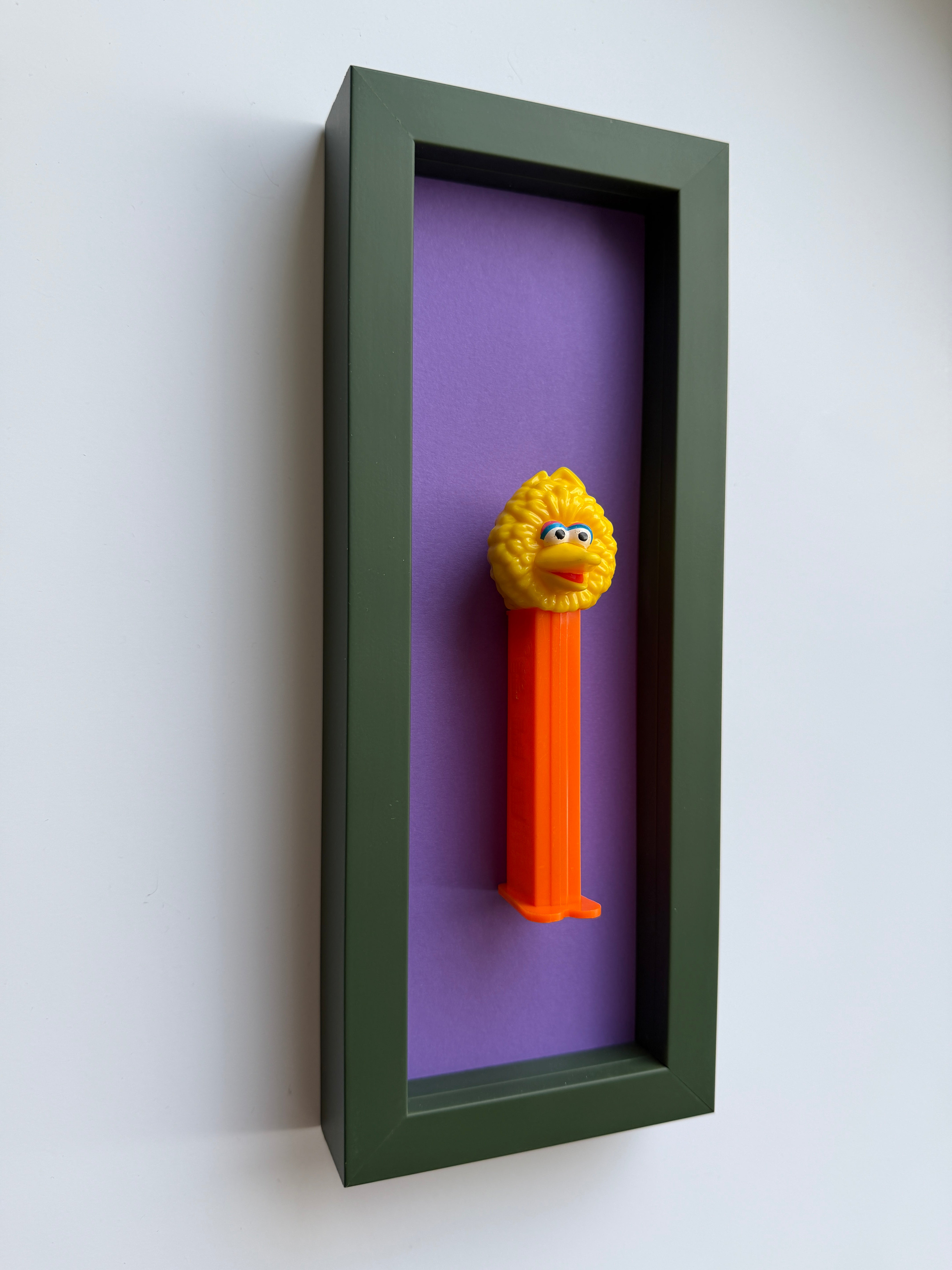 Jede Figur erzählt ihre eigene Geschichte – manche sind fast 50 Jahre alt und haben geduldig darauf gewartet, wiederentdeckt zu werden. Als wir die ersten PEZ-Spender auf einem Flohmarkt fanden, war sofort klar: Diese kleinen Schätze verdienen eine Bühne. Nach viel Tüftelei, dem Mix aus ausgewählten Materialien und liebevoller Handarbeit sind sie nun da – kleine Helden, kunstvoll in komplementären Farben gerahmt für deine Wände!