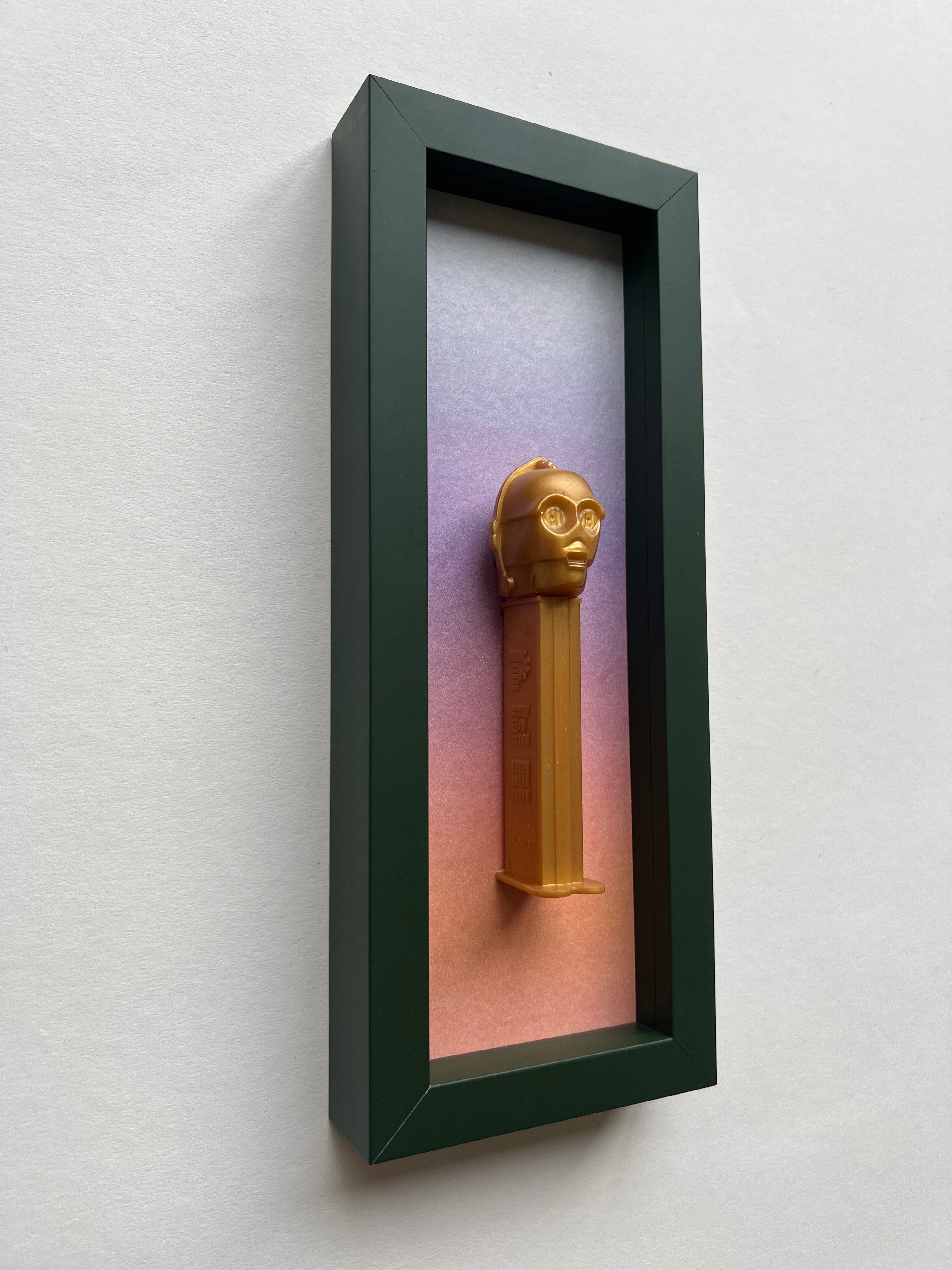 Jede Figur erzählt ihre eigene Geschichte – manche sind fast 50 Jahre alt und haben geduldig darauf gewartet, wiederentdeckt zu werden. Als wir die ersten PEZ-Spender auf einem Flohmarkt fanden, war sofort klar: Diese kleinen Schätze verdienen eine Bühne. Nach viel Tüftelei, dem Mix aus ausgewählten Materialien und liebevoller Handarbeit sind sie nun da – kleine Helden, kunstvoll in komplementären Farben gerahmt für deine Wände!