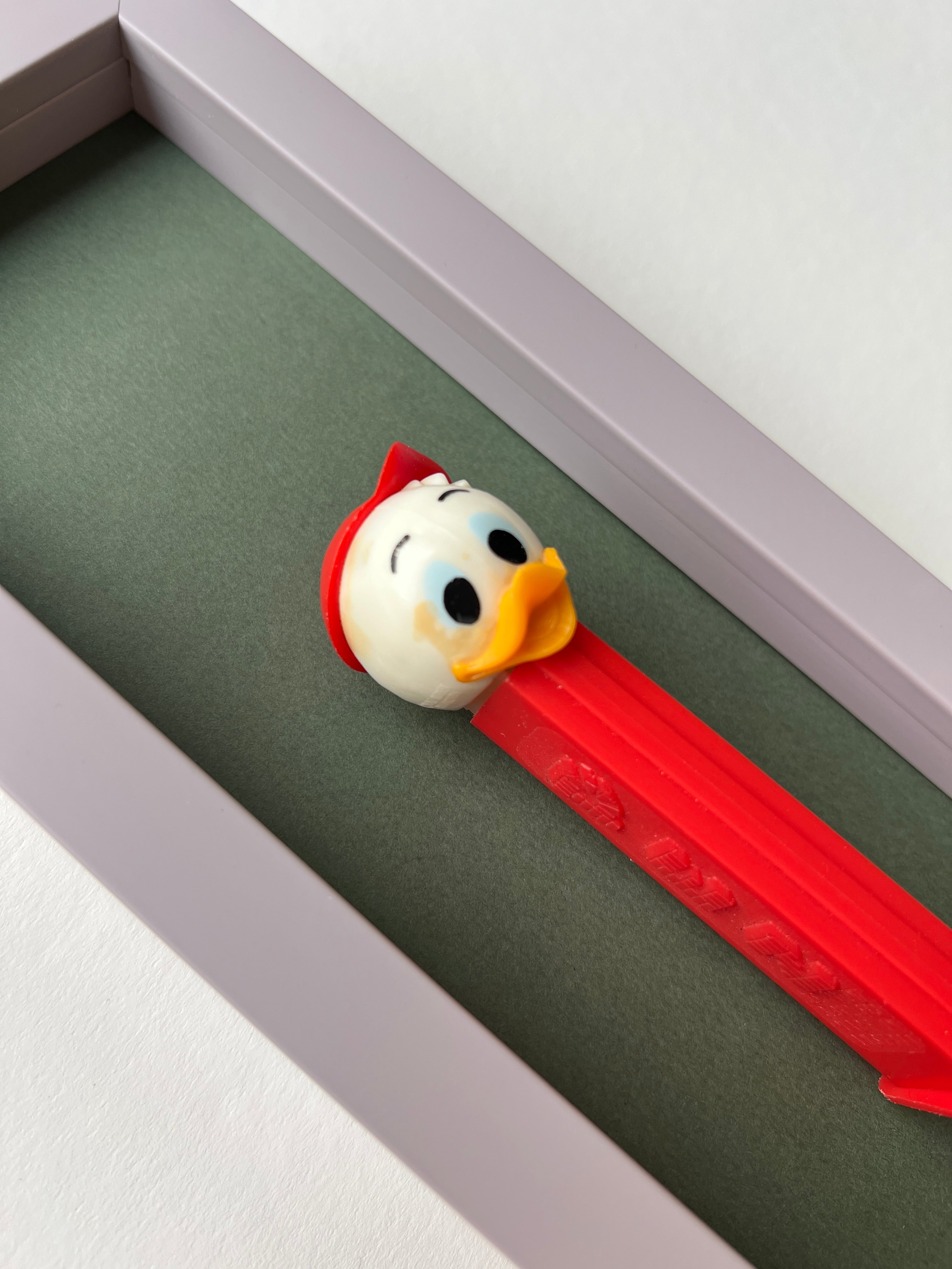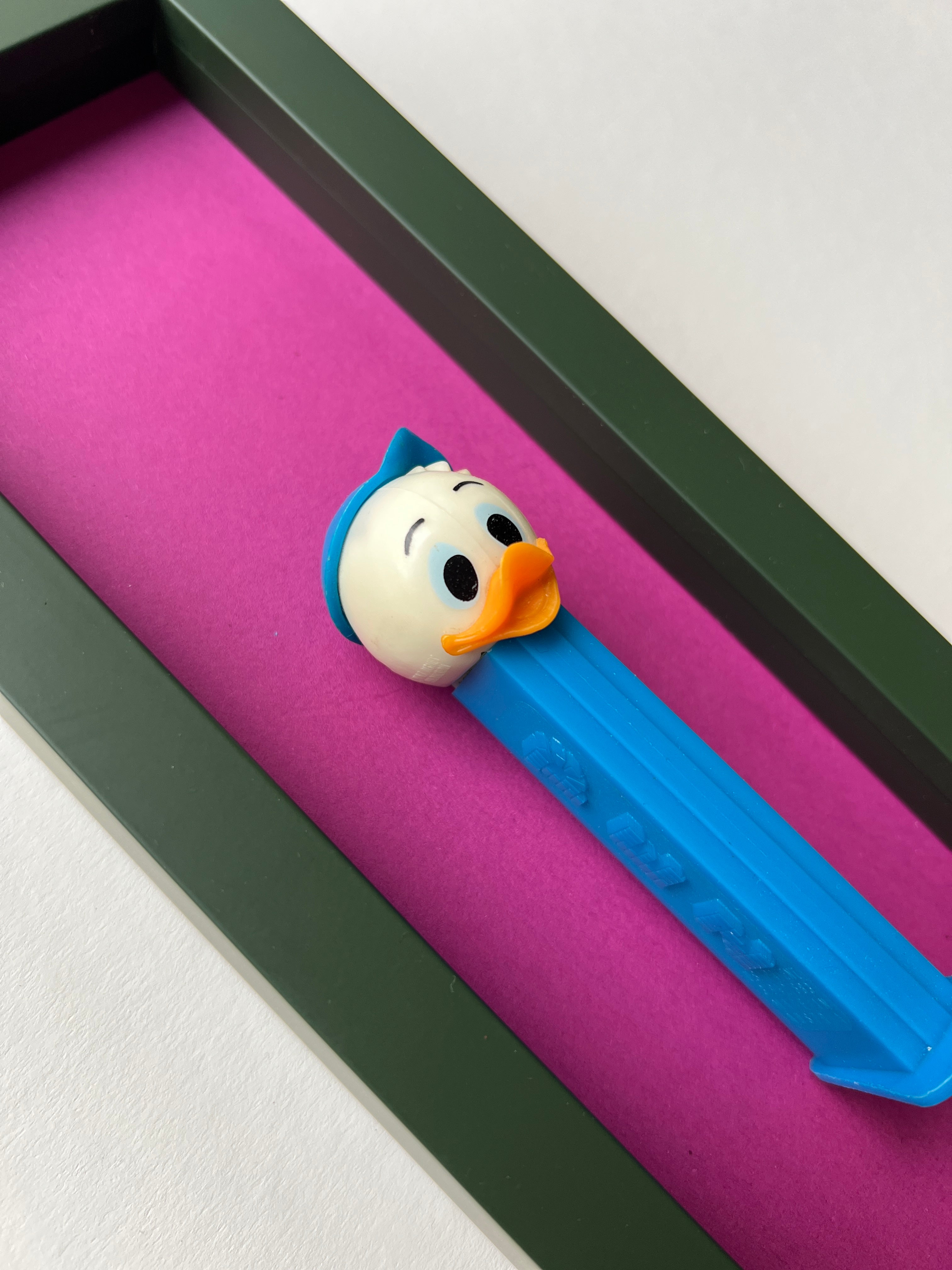 Jede Figur erzählt ihre eigene Geschichte – manche sind fast 50 Jahre alt und haben geduldig darauf gewartet, wiederentdeckt zu werden. Als wir die ersten PEZ-Spender auf einem Flohmarkt fanden, war sofort klar: Diese kleinen Schätze verdienen eine Bühne. Nach viel Tüftelei, dem Mix aus ausgewählten Materialien und liebevoller Handarbeit sind sie nun da – kleine Helden, kunstvoll in komplementären Farben gerahmt für deine Wände!