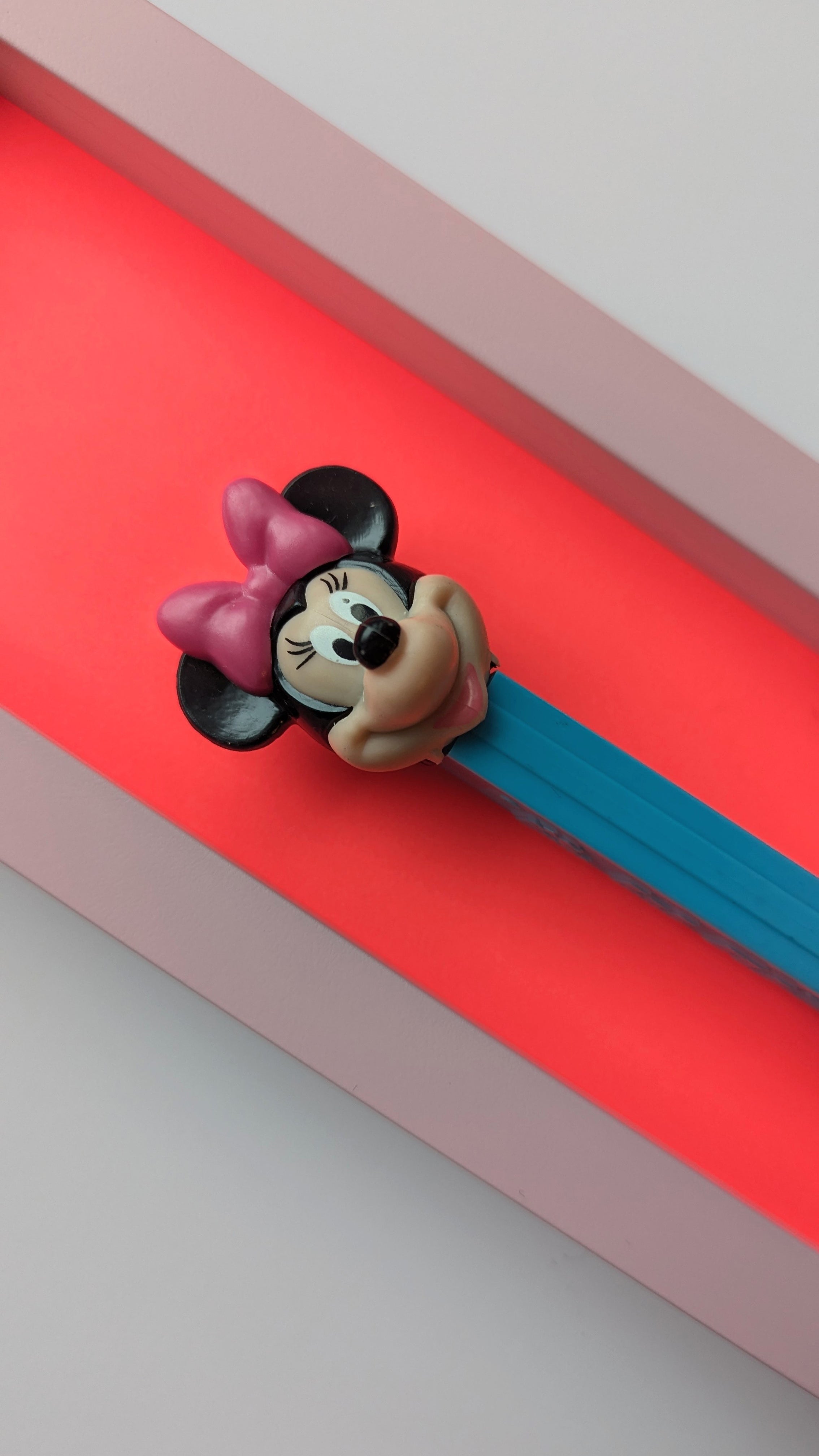 Jede Figur erzählt ihre eigene Geschichte – manche sind fast 50 Jahre alt und haben geduldig darauf gewartet, wiederentdeckt zu werden. Als wir die ersten PEZ-Spender auf einem Flohmarkt fanden, war sofort klar: Diese kleinen Schätze verdienen eine Bühne. Nach viel Tüftelei, dem Mix aus ausgewählten Materialien und liebevoller Handarbeit sind sie nun da – kleine Helden, kunstvoll in komplementären Farben gerahmt für deine Wände!