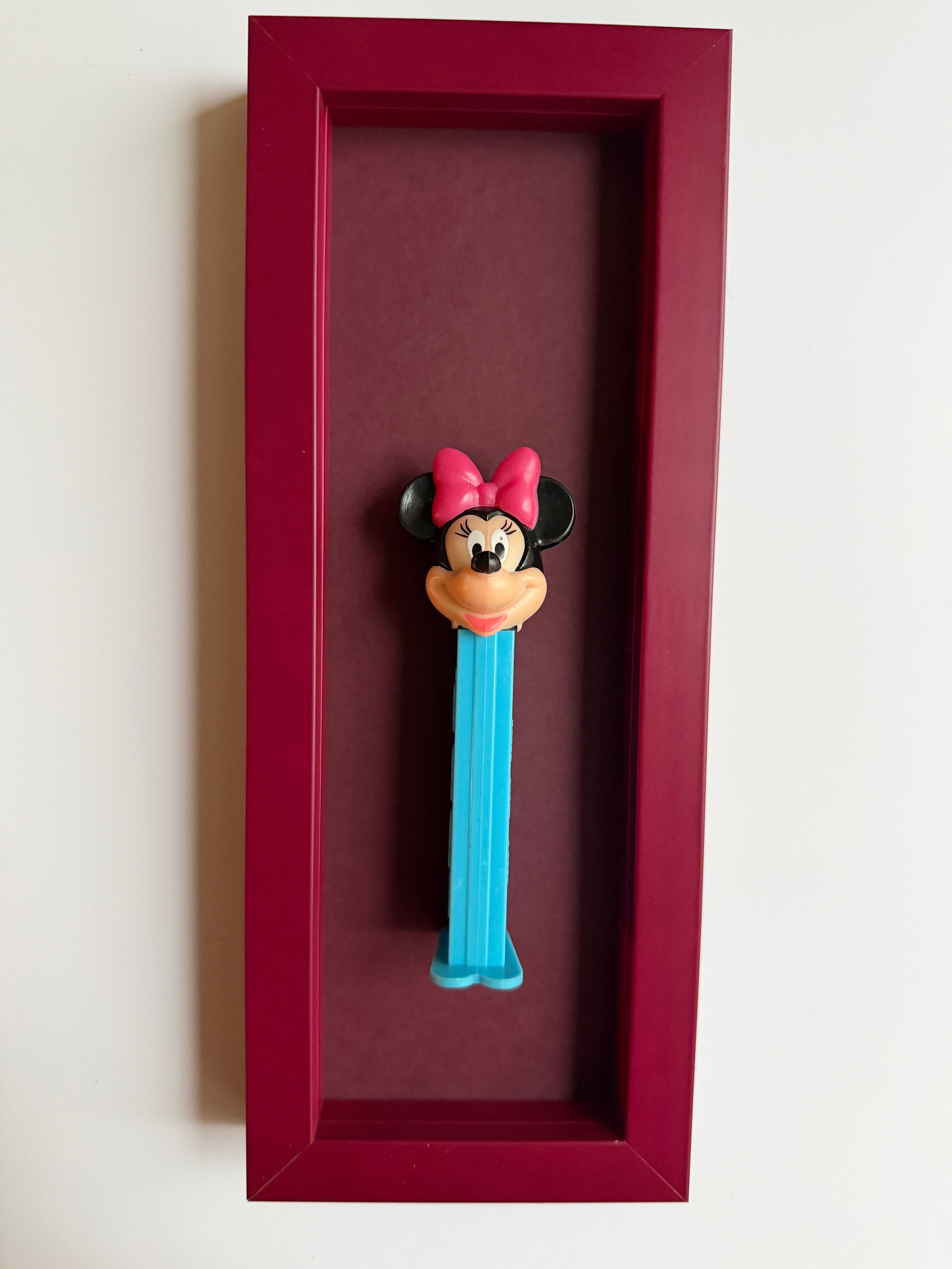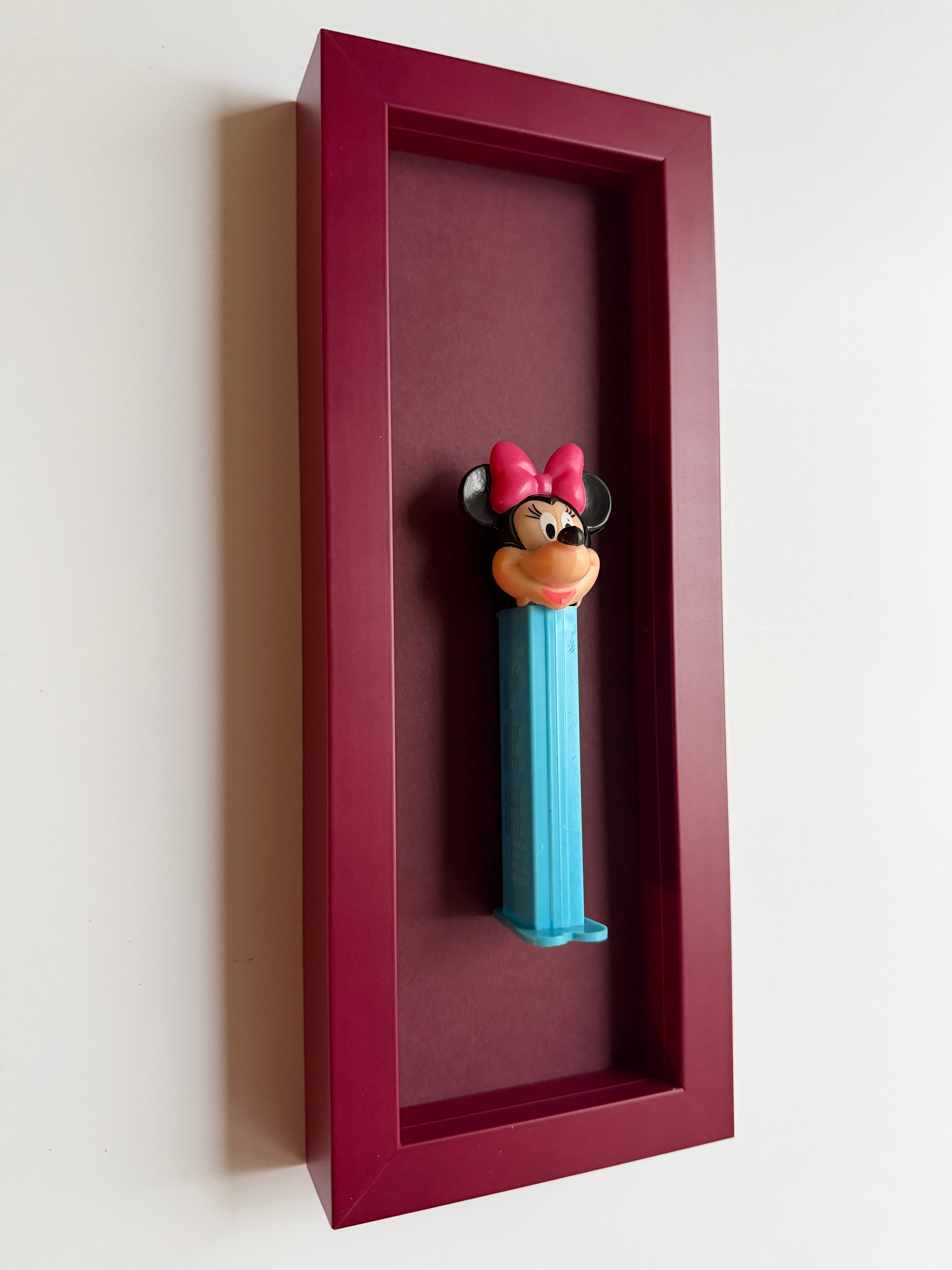 Jede Figur erzählt ihre eigene Geschichte – manche sind fast 50 Jahre alt und haben geduldig darauf gewartet, wiederentdeckt zu werden. Als wir die ersten PEZ-Spender auf einem Flohmarkt fanden, war sofort klar: Diese kleinen Schätze verdienen eine Bühne. Nach viel Tüftelei, dem Mix aus ausgewählten Materialien und liebevoller Handarbeit sind sie nun da – kleine Helden, kunstvoll in komplementären Farben gerahmt für deine Wände!