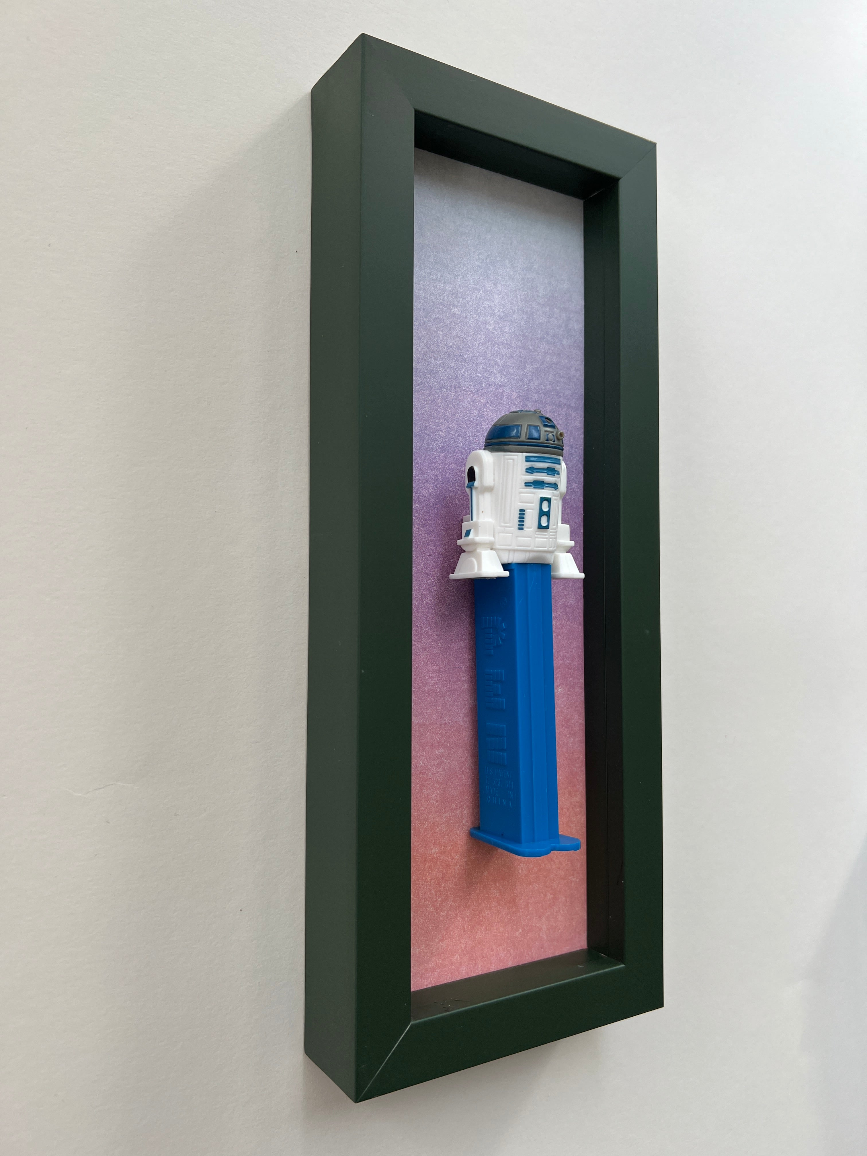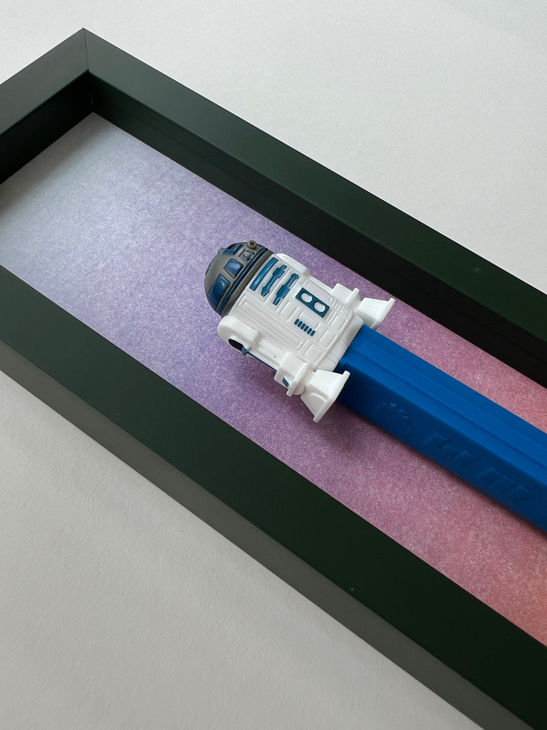 Jede Figur erzählt ihre eigene Geschichte – manche sind fast 50 Jahre alt und haben geduldig darauf gewartet, wiederentdeckt zu werden. Als wir die ersten PEZ-Spender auf einem Flohmarkt fanden, war sofort klar: Diese kleinen Schätze verdienen eine Bühne. Nach viel Tüftelei, dem Mix aus ausgewählten Materialien und liebevoller Handarbeit sind sie nun da – kleine Helden, kunstvoll in komplementären Farben gerahmt für deine Wände!